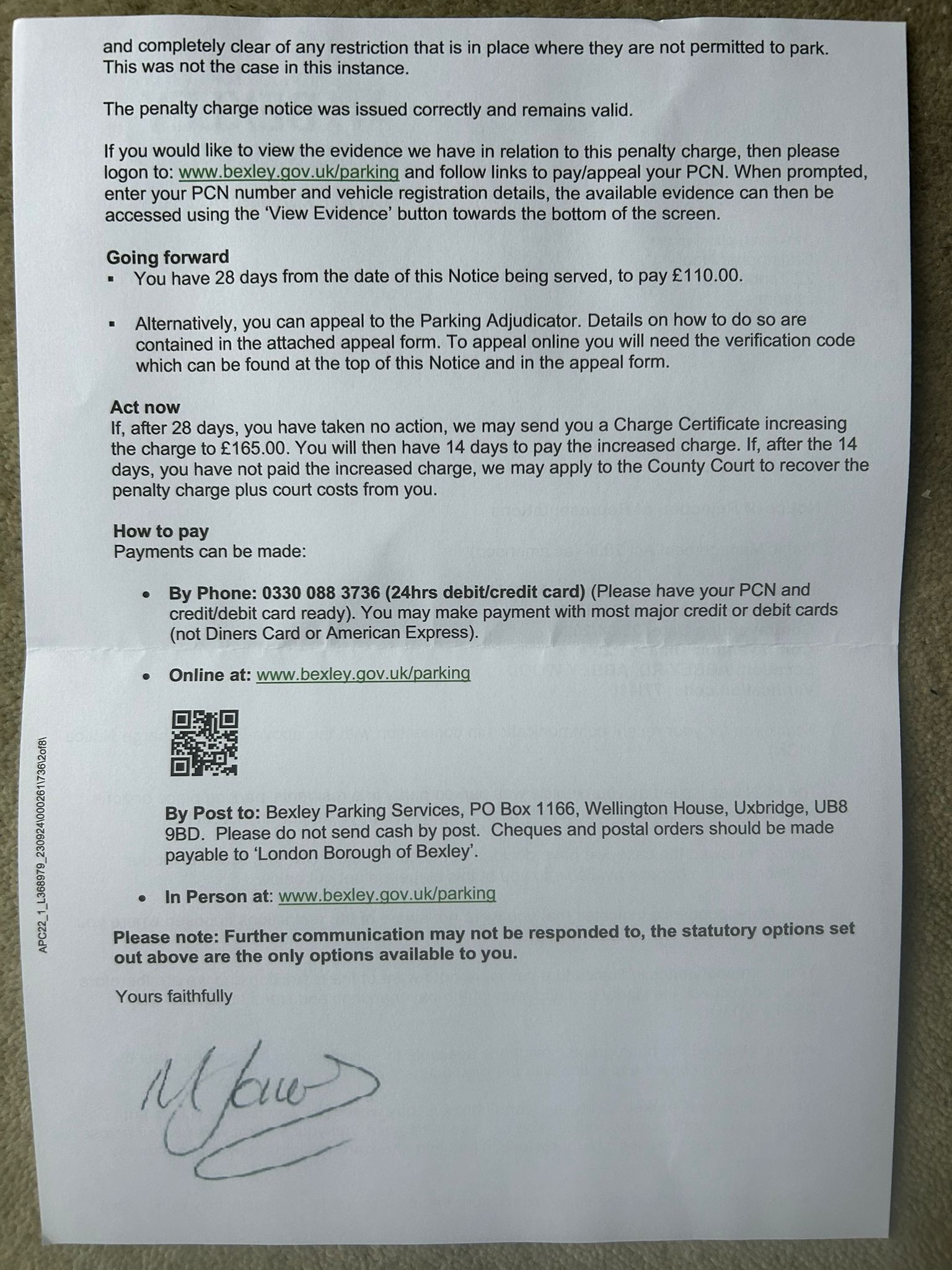 Good spot! In terms of my appeal to London Tribunals, is the below sufficient?