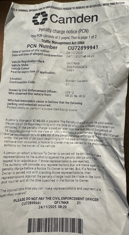Author Topic: Camden N6 - Code 21 on 24 Nov - Notice board says 17th-21st Nov restriction  (Read 1112 times)