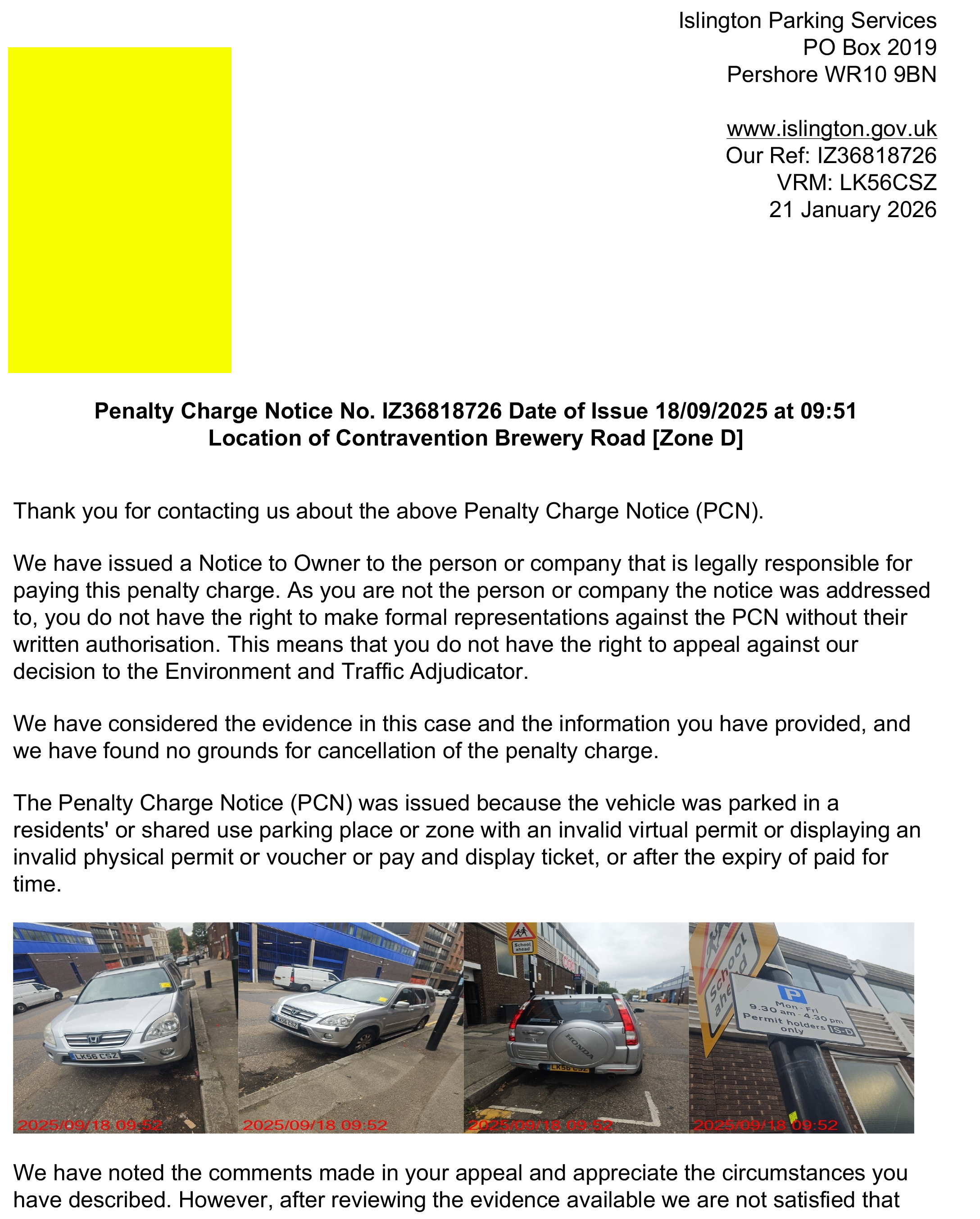 So I forgot to renew my permit with Islington, and I got a PCN. I appealed, and it got rejected, and I appealed again, and it got rejected again. They sent the NTO, and I sent the same appeal which got rejected as well.