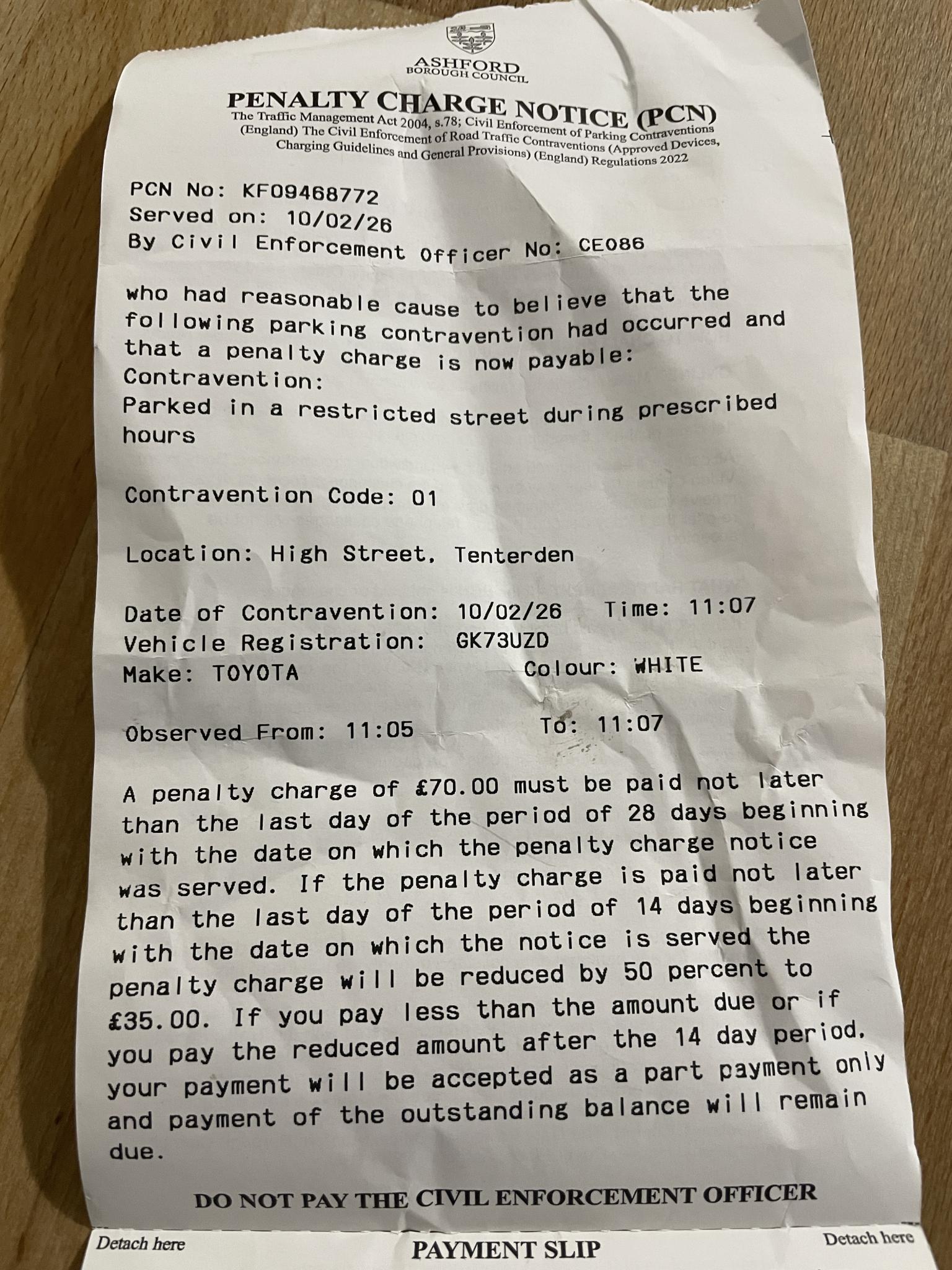 The Civil enforcement Officer in Tenterden is noted for his over-zealous activities. I tend to go there a couple of times a month