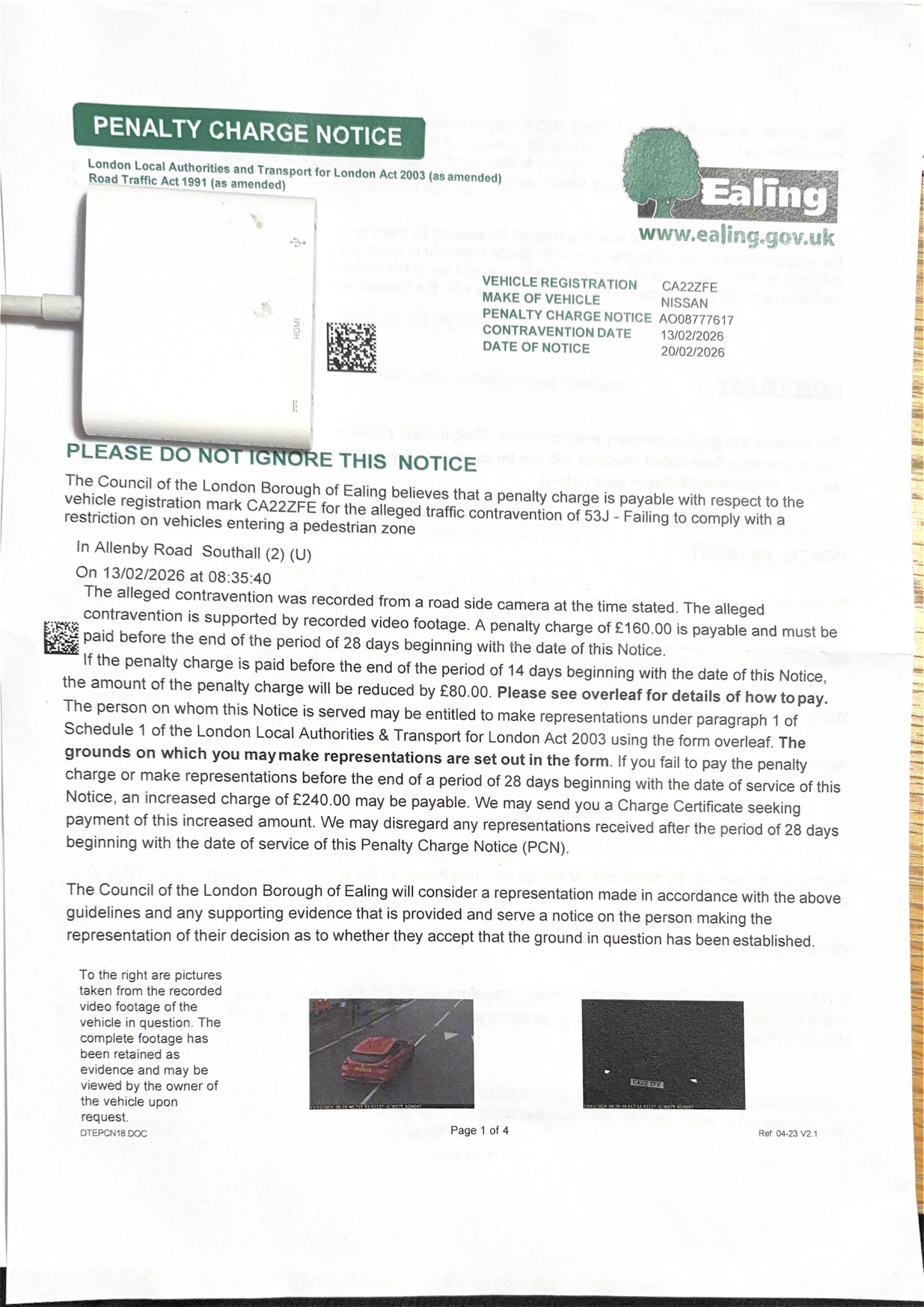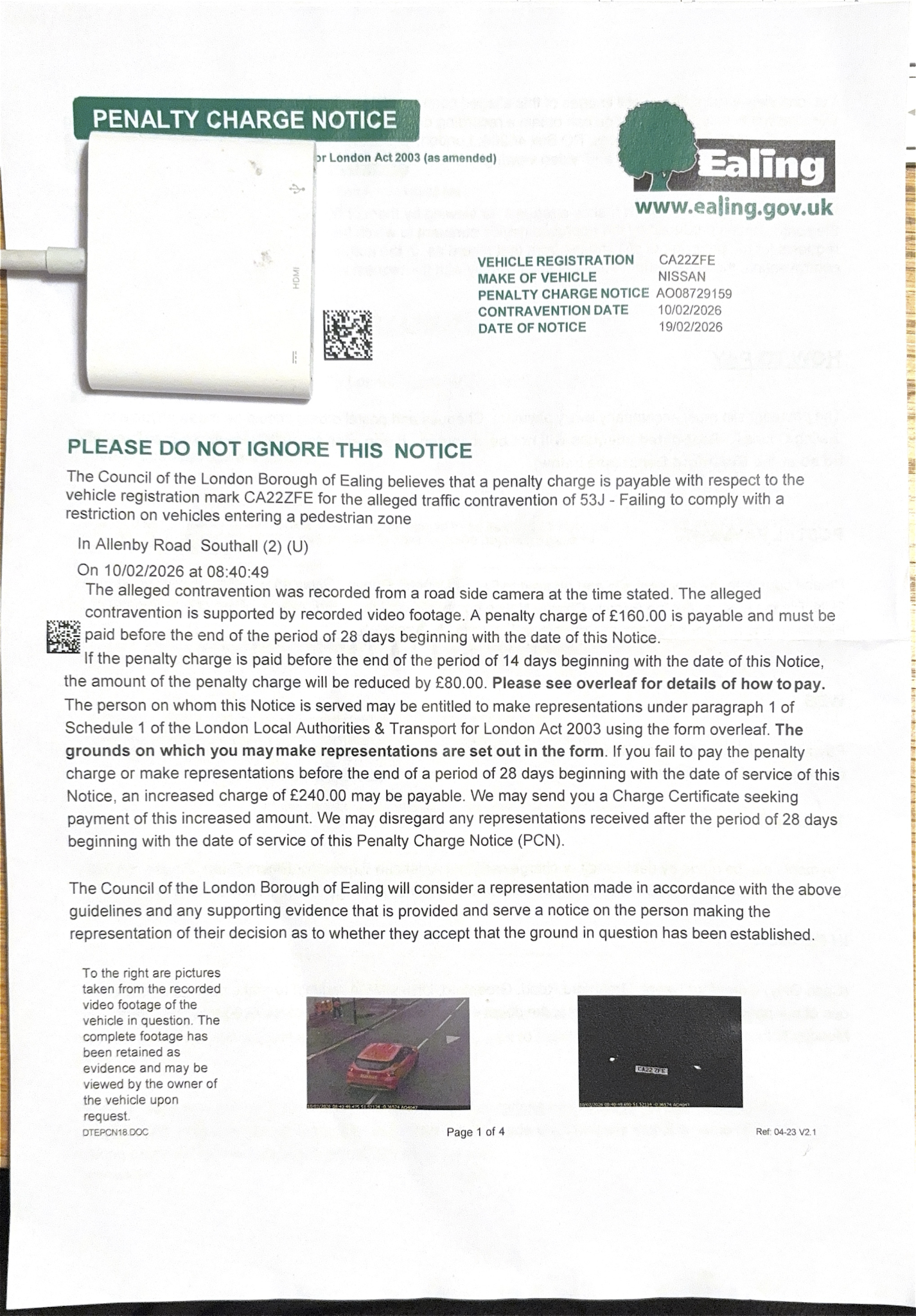 Hi there, I started work at Ealing Hospital (doctor) on 2nd February and have been intermittently driving to work, through unfamiliar streets, following Google Maps. I received my first PCN letter in the post on 14th February for driving through Allenby Road (as shown Image 1)on 6th February, unaware where I had driven to get to work, let alone driven through the pedestrian zone, due to unfamiliarity. I have since stopped driving through the areas having checked on Google maps, but only now find information where the pedestrian zone starts, on this website (