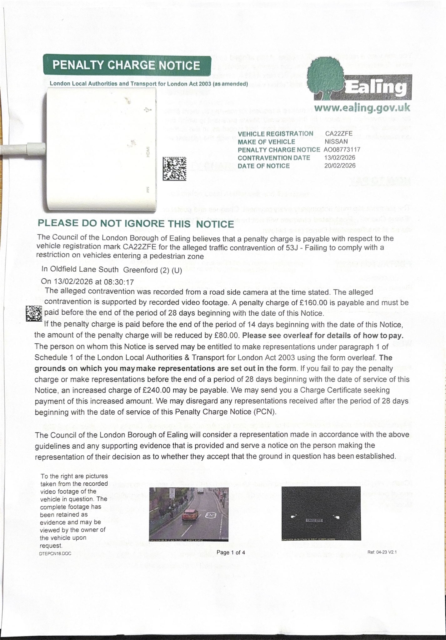 Author Topic: Ealing 53J - Failing to comply with a restriction entering pedestrian zone Allenby Road and Oldfield Lane South  (Read 2684 times)