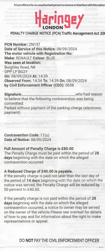 Re: EV restrictions not on the Parking signs and PCN unsigned