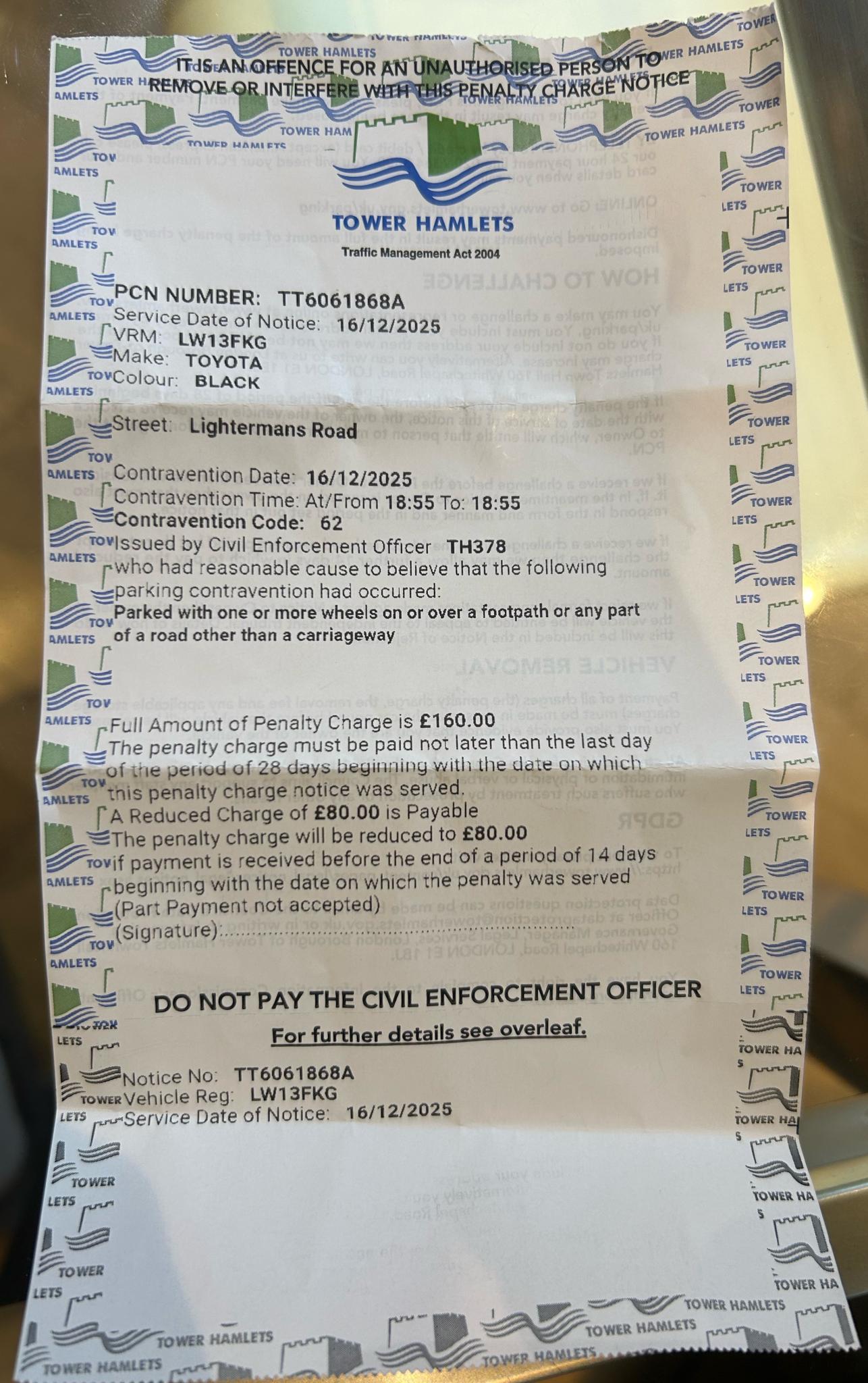 Have you live in London long ? Reason I ask is that the bar on off-carriageway parking in London dates back to an Act of the 1970s, and no signs or lines are needed to indicate this restriction. If you'd stayed on the DYLs you would have had a very robust appeal argument of loading, which is an exemption to yellow lines. Looking at your GSV link, there is no loading restriction.