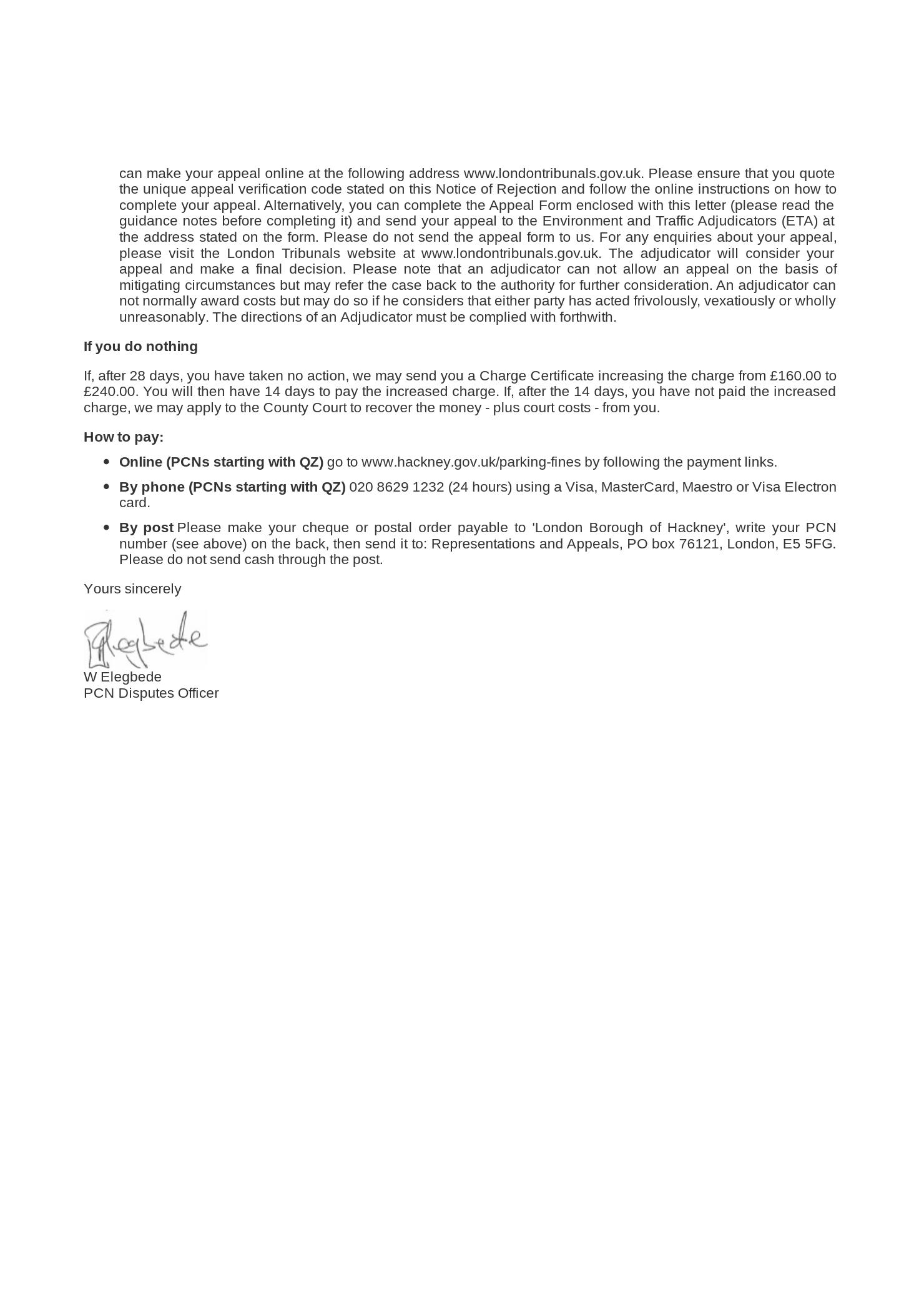 I help you pro bono (for free). I now ask that a £40 donation is made to the North London Hospice before I take over your case. I have an 85% success rate across 2,000 PCNs but some PCNs can't be beaten and I will tell you if your case looks hopeless before asking you to donate.