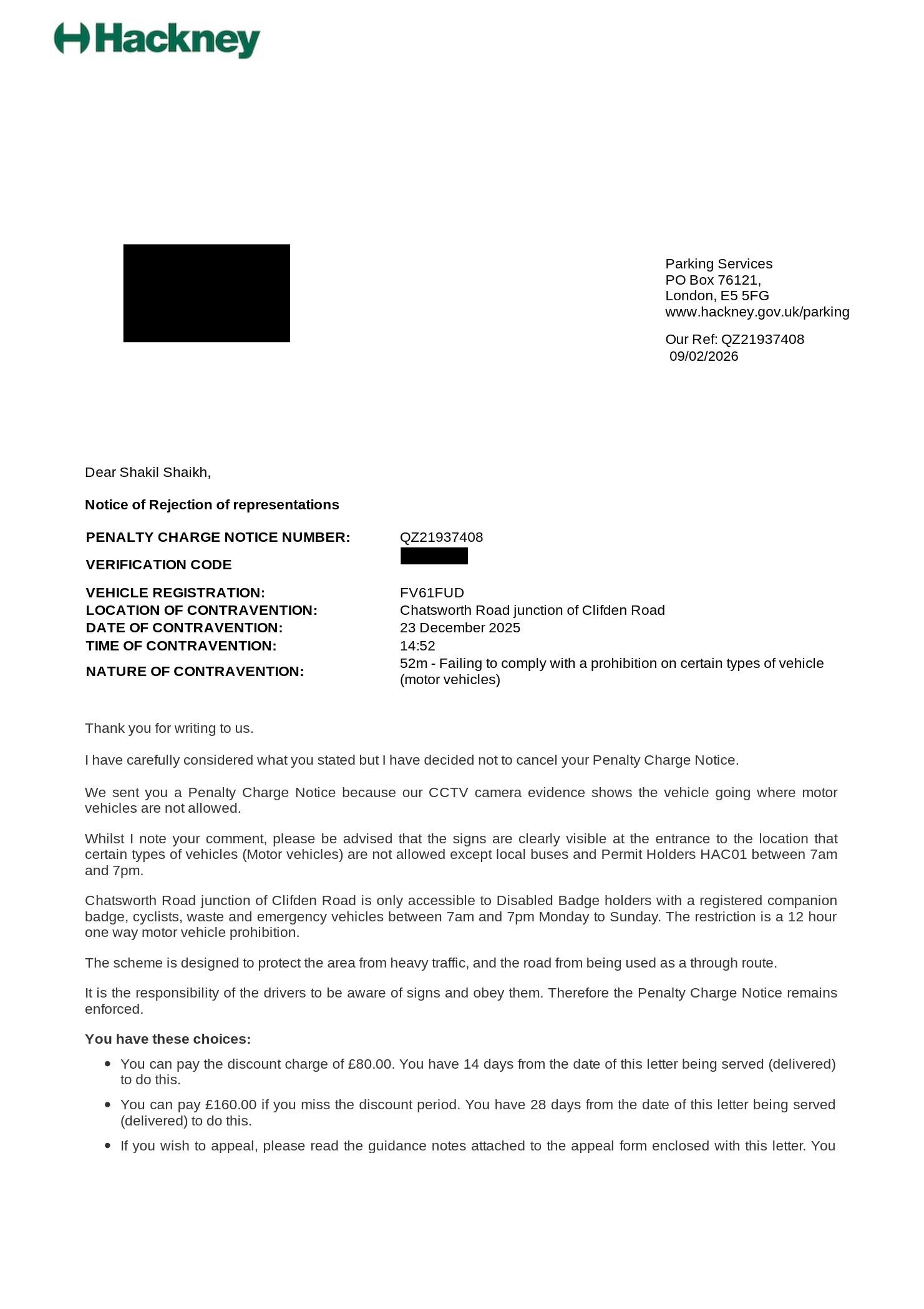 Author Topic: Hackney, 52m Failing to comply with a prohibition on certain types of vehicle (motor vehicles)  (Read 2570 times)