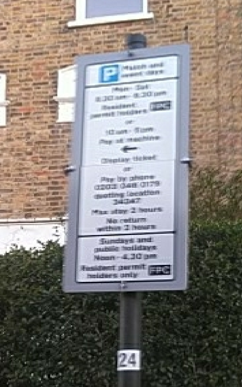 A parking sign is formatted as follows: