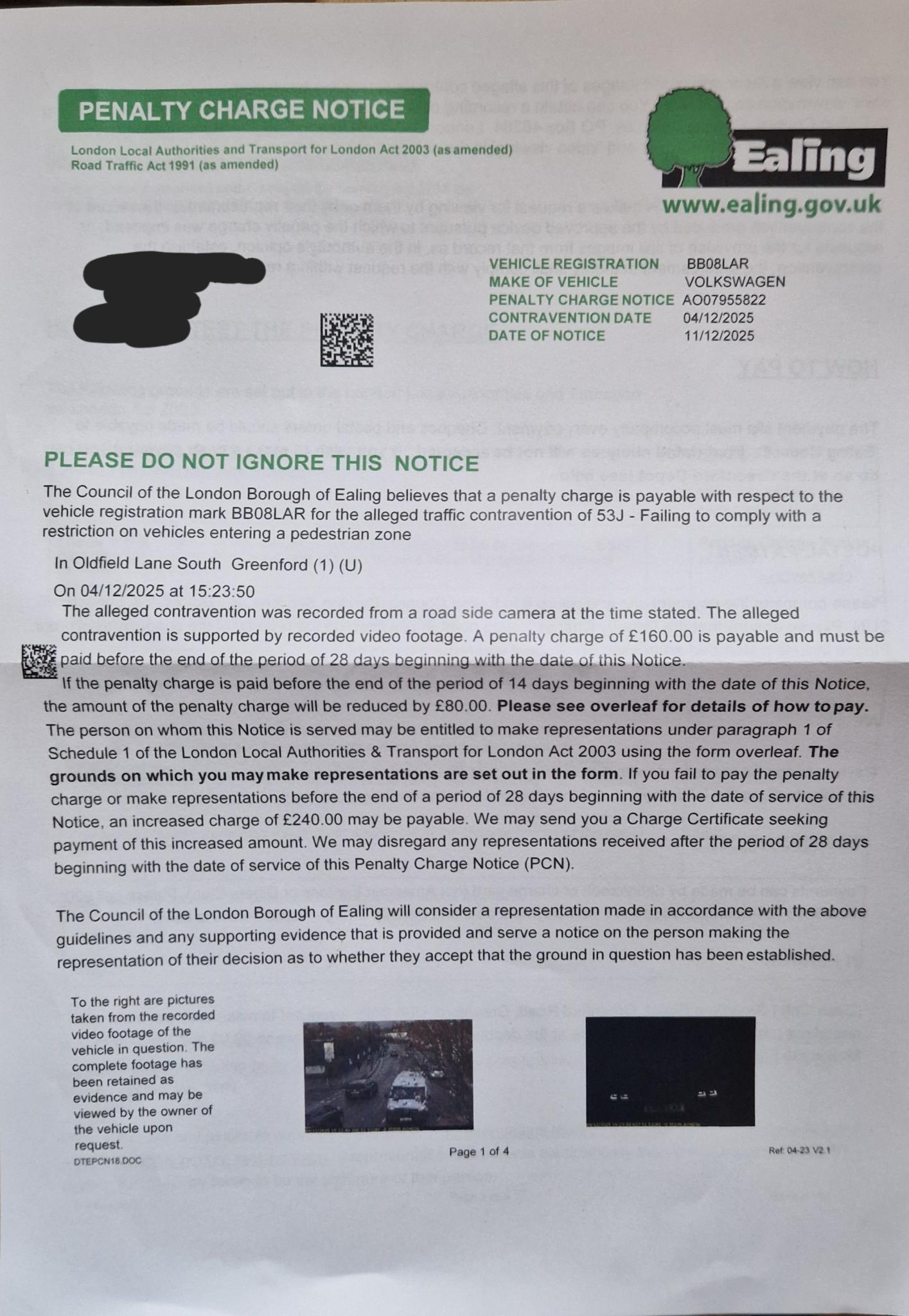 Author Topic: Ealing Council - Failing to comply Vehicle in Pedestrian Zone 53J - Oldfield Lane South, Greenford  (Read 84 times)