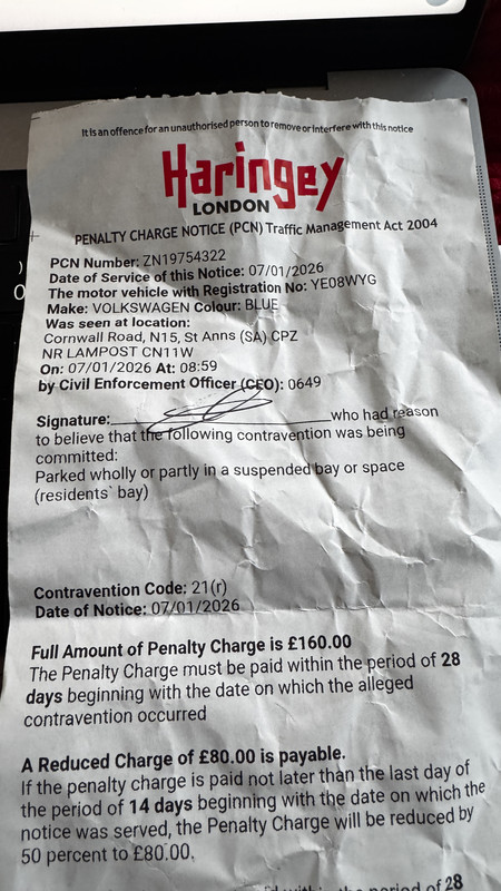 Re: Haringey, parked during a temporary parking restriction