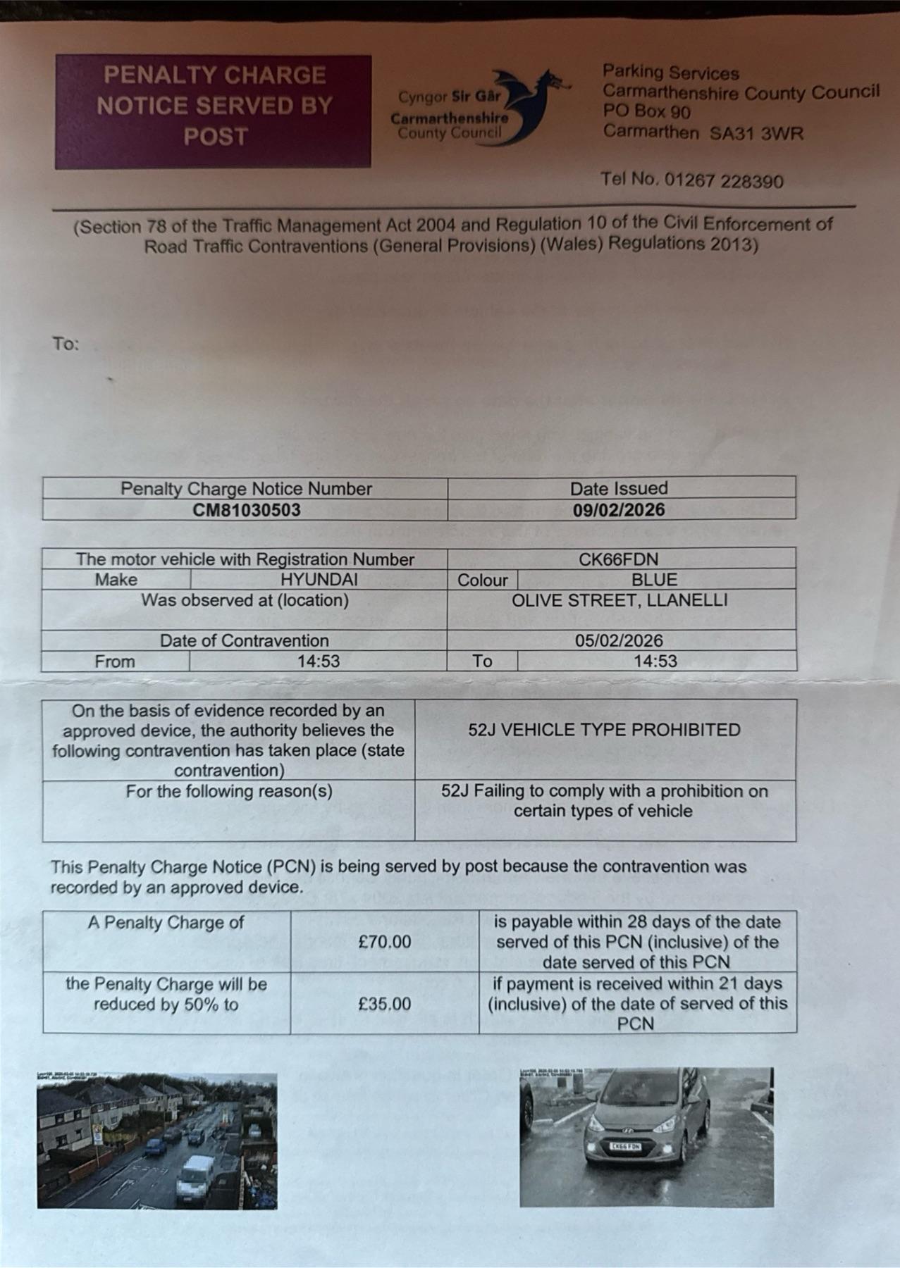 I yesterday (11/02/2026) received from Carmarthenshire County Council the PCN linked below.
