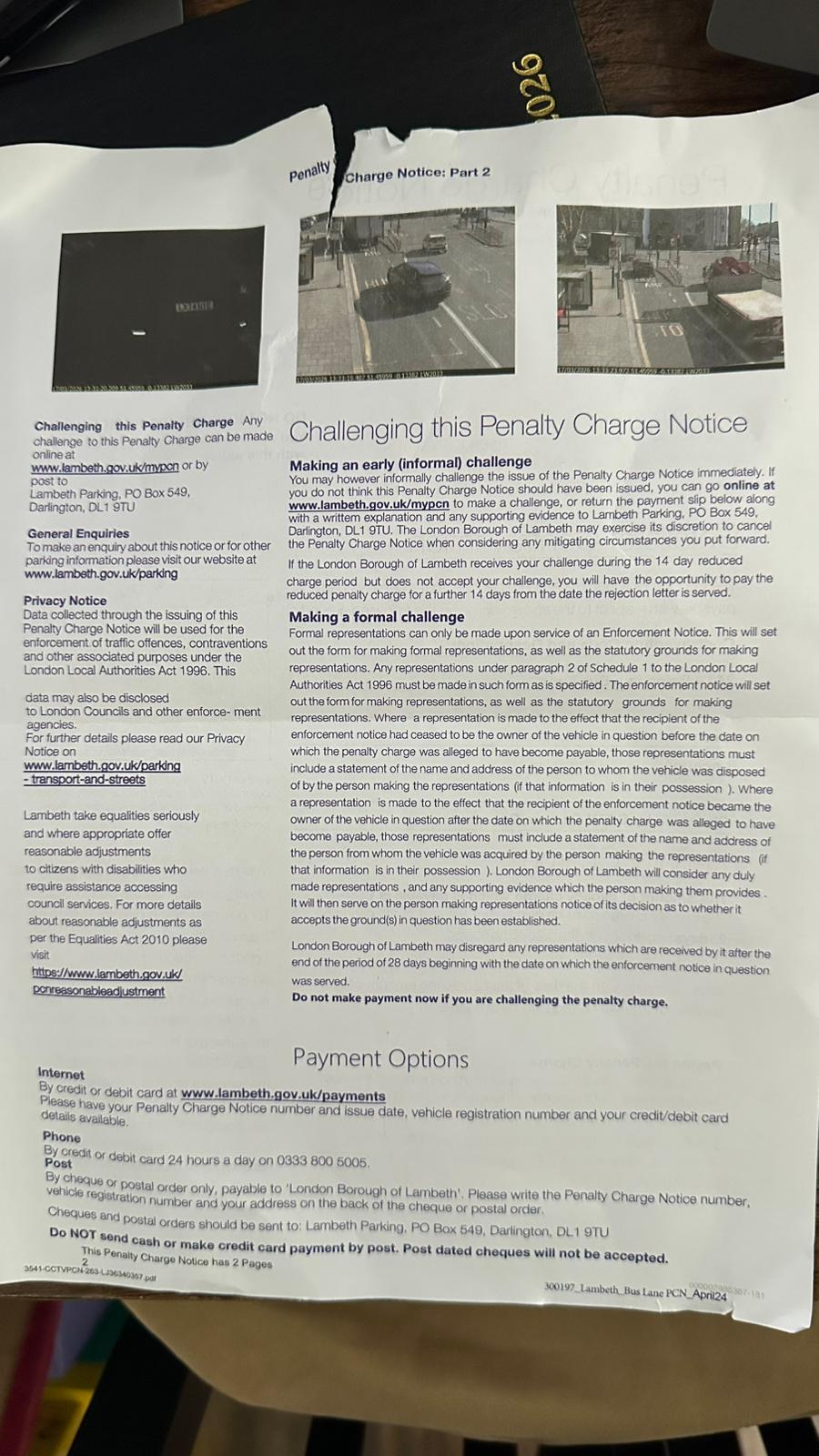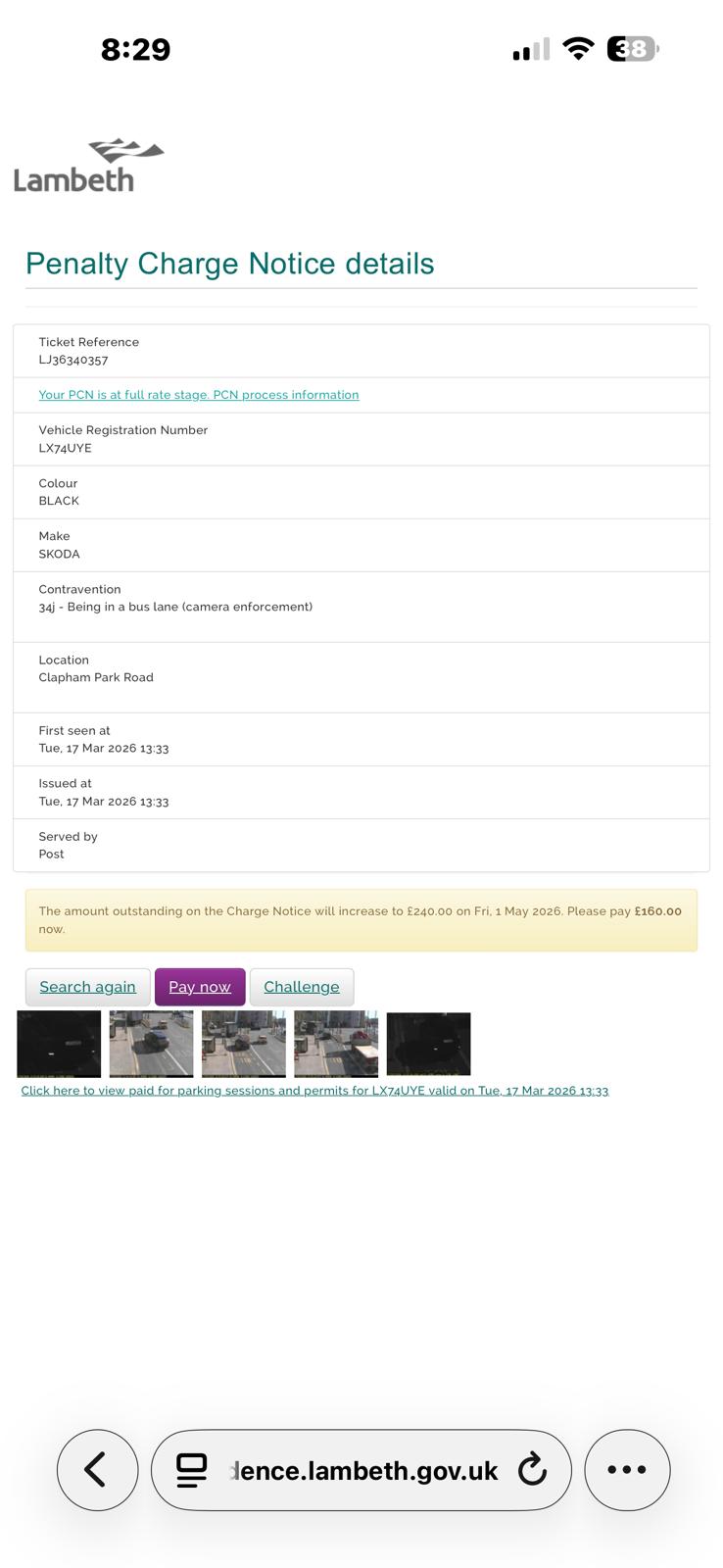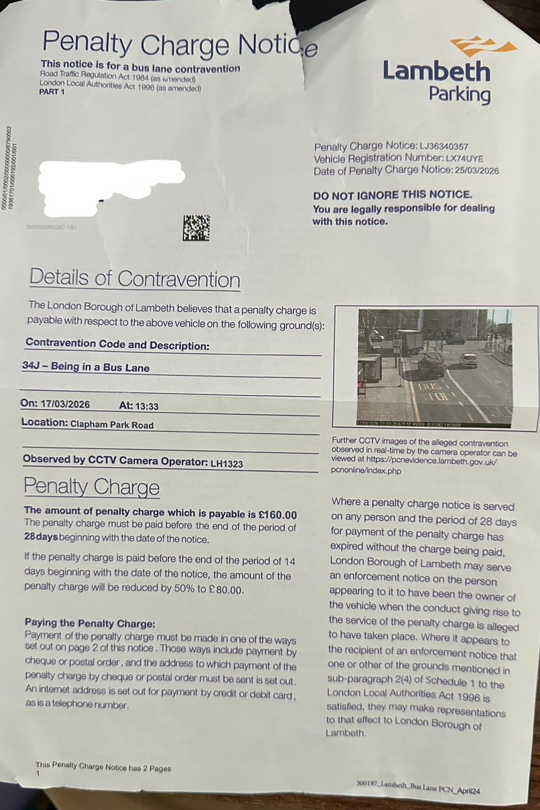 Author Topic: Lambeth Council, 34J - Being a Bus Lane, Clapham Park Road PCN Issued on 25.03.2026  (Read 47 times)