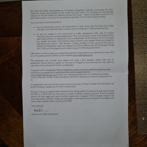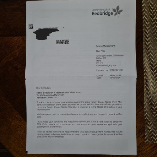 On the day in question, my mother stopped briefly at the restricted area to allow my father, to alight from the vehicle. Unfortunately, the designated nearby disabled bays were fully occupied, necessitating a temporary stop at the bus stop area. I would like to emphasise that my father holds a valid disabled badge, a copy of which is attached for your reference.