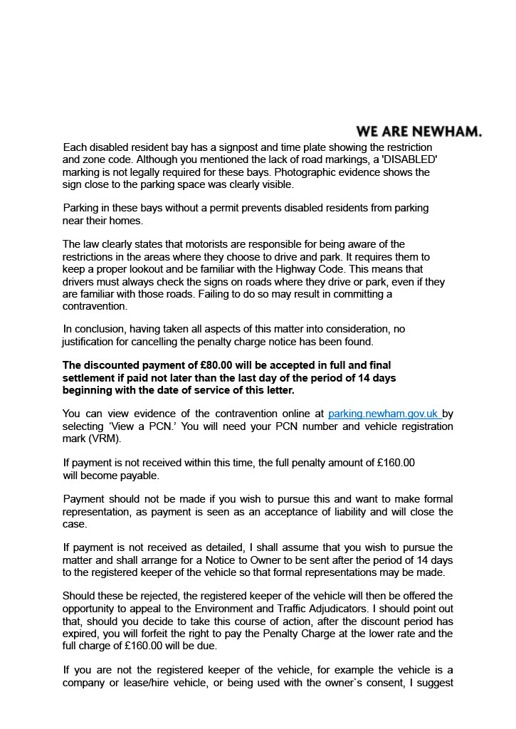 - I received a parking ticket with contravention code 165 (Newham) - Being parked in a disabled bay