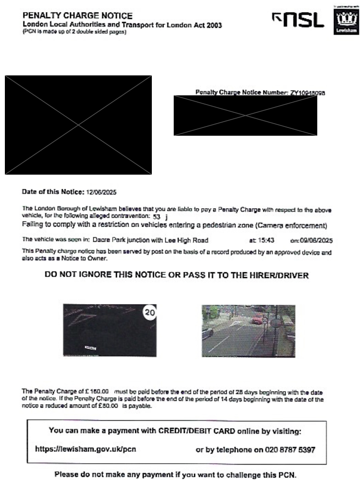 Author Topic: PCN 53J Dacre Park- Failing to comply with restrictions on vehicles entering a pedestrian zone (Camera enforcement)  (Read 1210 times)