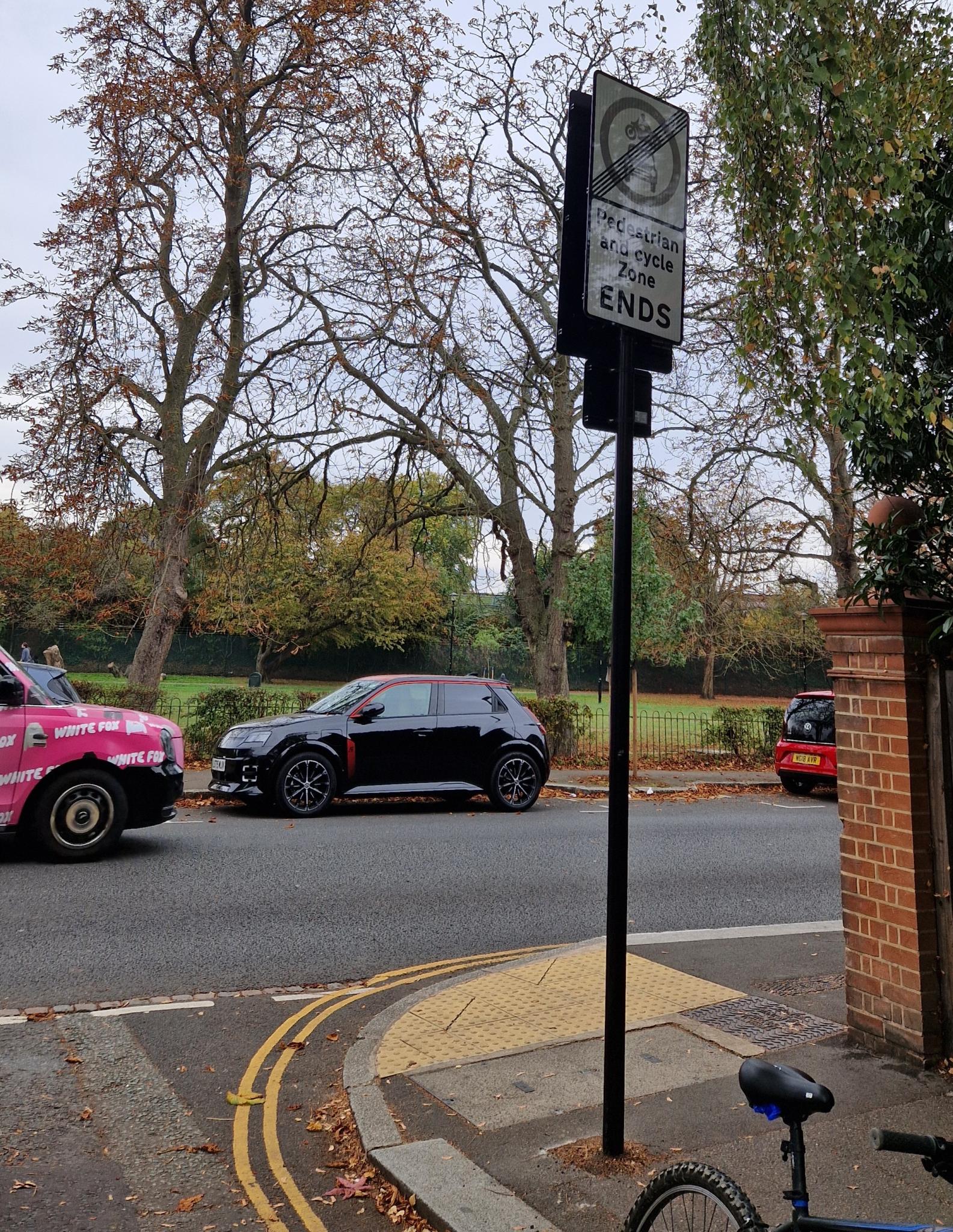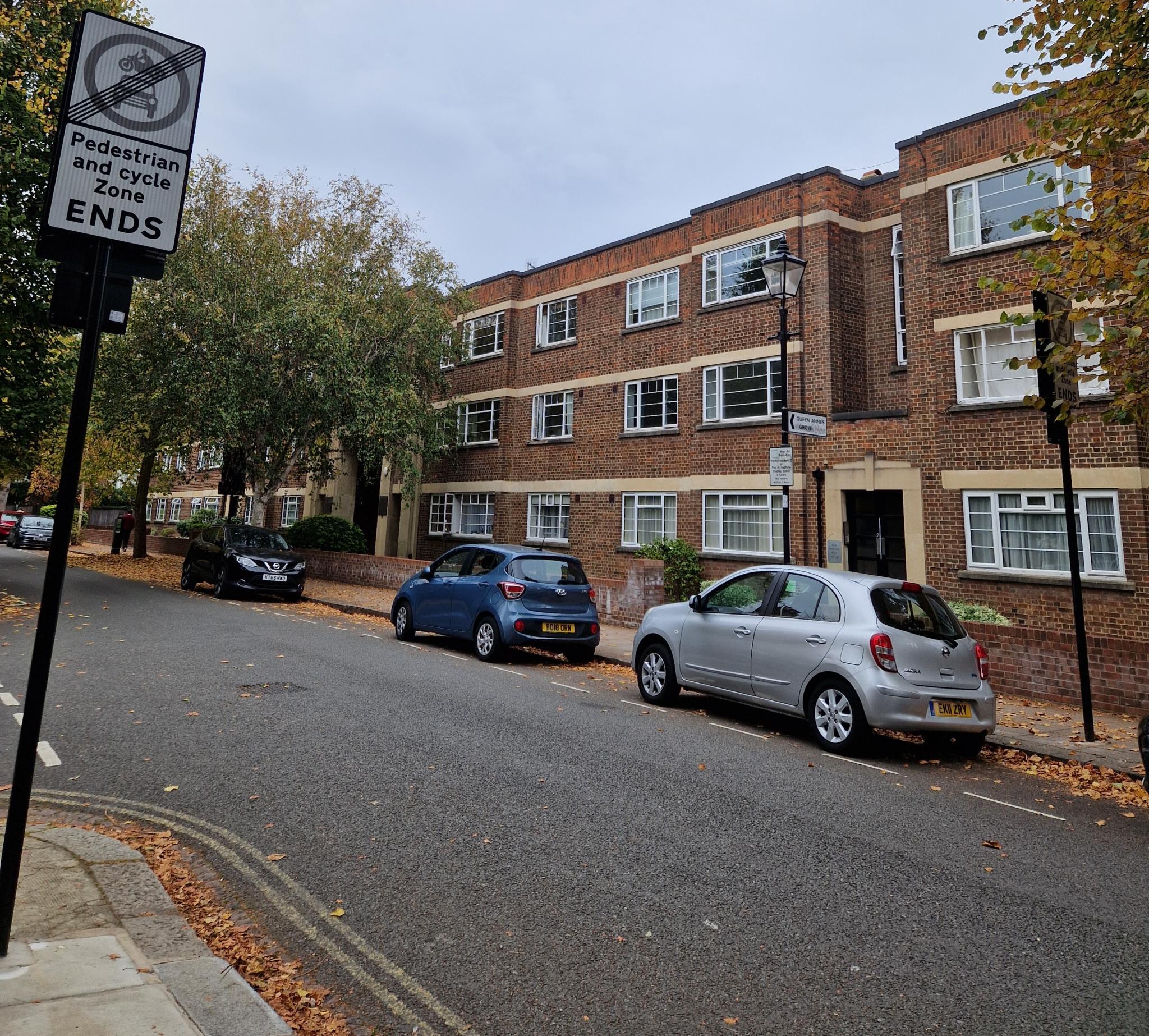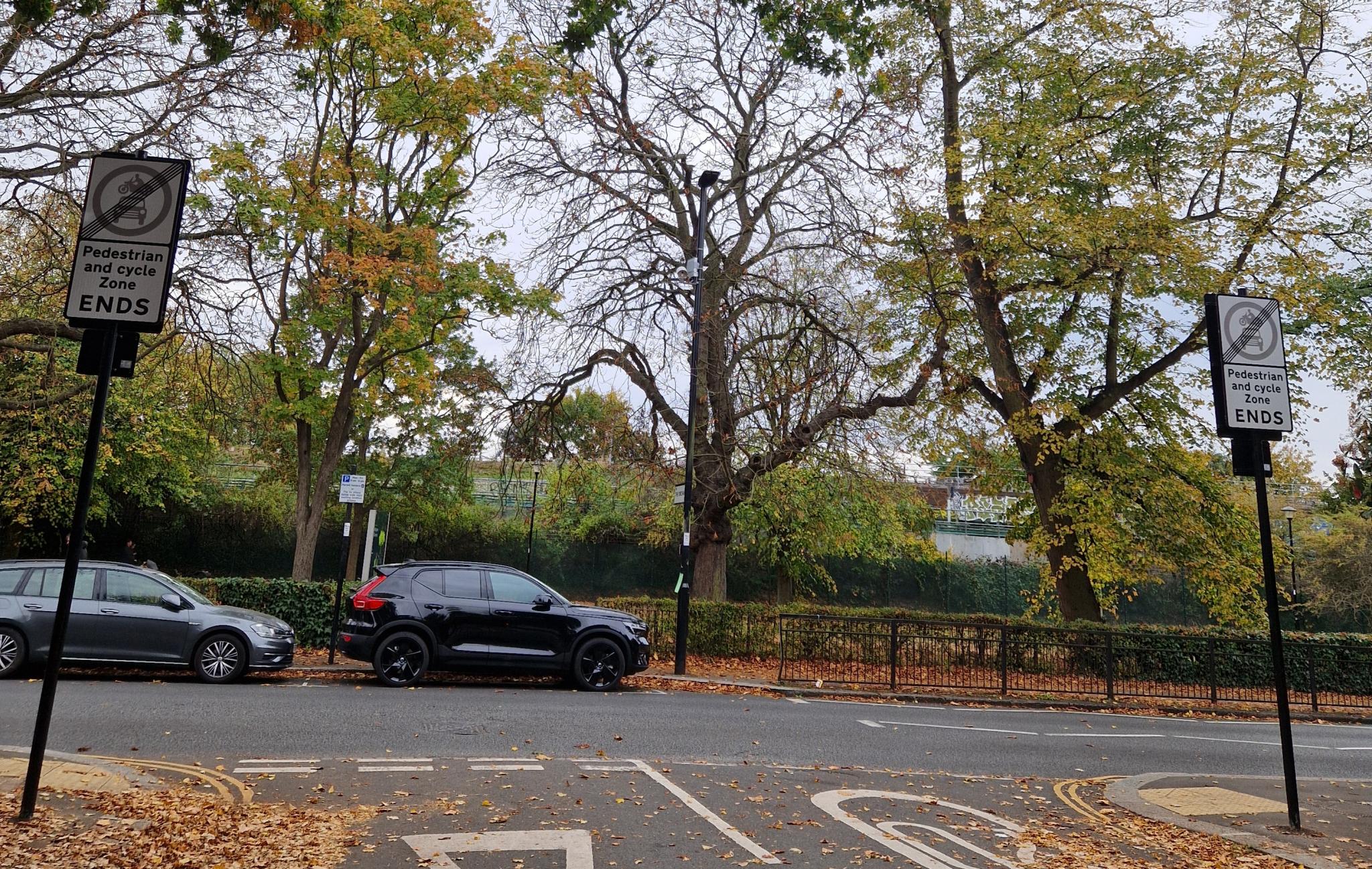 Nearby, two side roads along South Parade in Turnham Green, W4, part of Ealing Borough, were literally covered with black plastic bin bags a week ago and I presume either for amending the time restrictions and/or adding the end zones. Two neighboroughing boroughs having two different approaches to end zone signs for similar pedestrian and cycle zones. I attach some pictures for comparison. However, I wonder if showing these signs will sway the Adjudicator to consider the signs used by LBHF invalid or insufficient to prevent the contraventions from taking place.