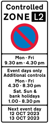 3) The website mentioned 12 and 13 Oct 2023 as next event days. The sign (which I later located to be very far away, see below) mentioned 5,9,16,30 September. This inconsistency alone makes the PCN invalid. Please note I have a time-stamped video recording of your website, should this be somehow changed after my challenge.
