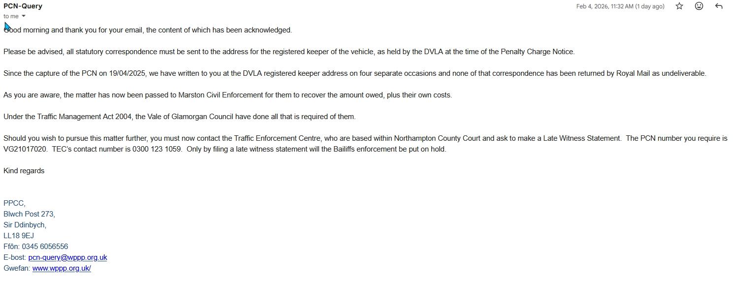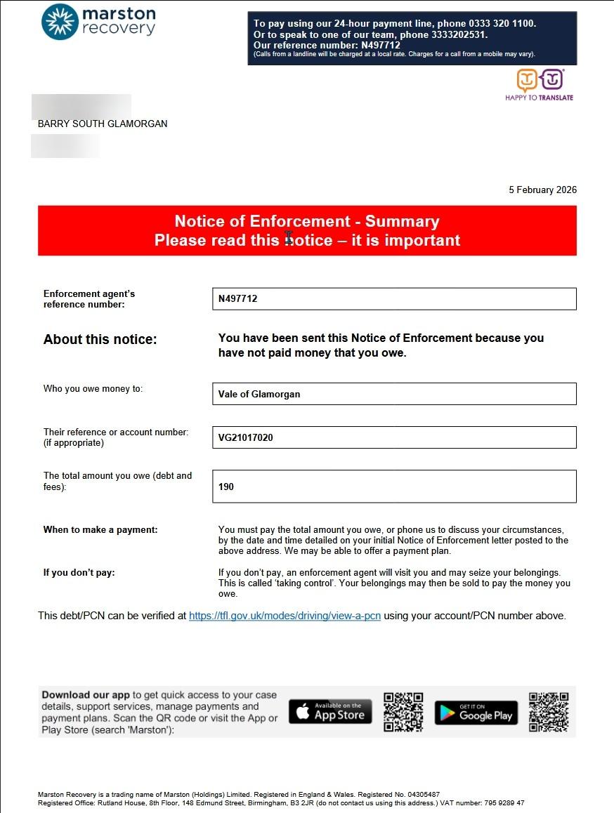 After a short phone call they informed me I have an outstanding fine of £190, from April 2025. But due to my address being different, they had to perform a track and trace. They have now sent me an electronic "letter" today, detailing that I need to come to an agreement with them by the END of TODAY.
