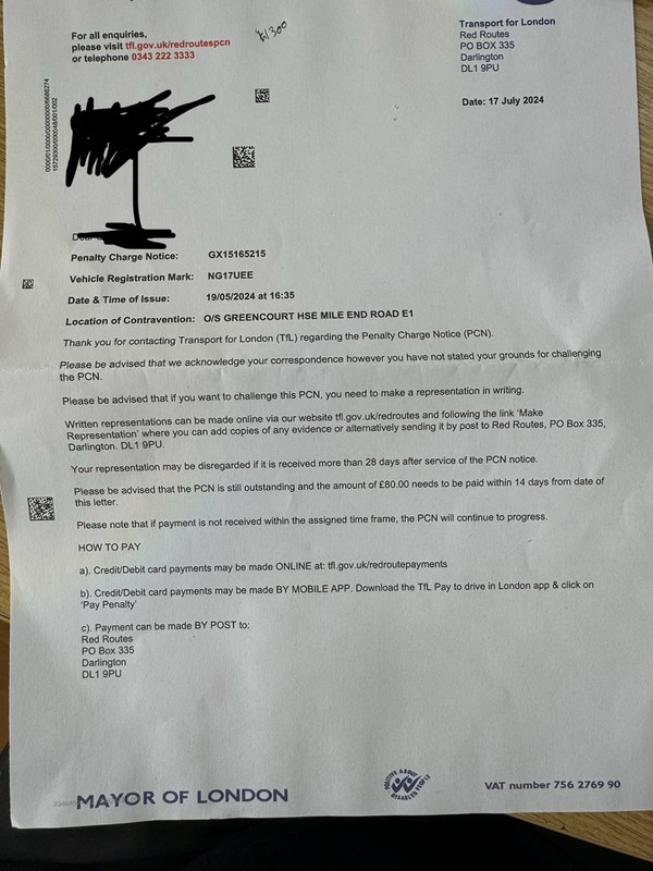 So i have received a letter in the post from TFL to make a representation within 28 days.