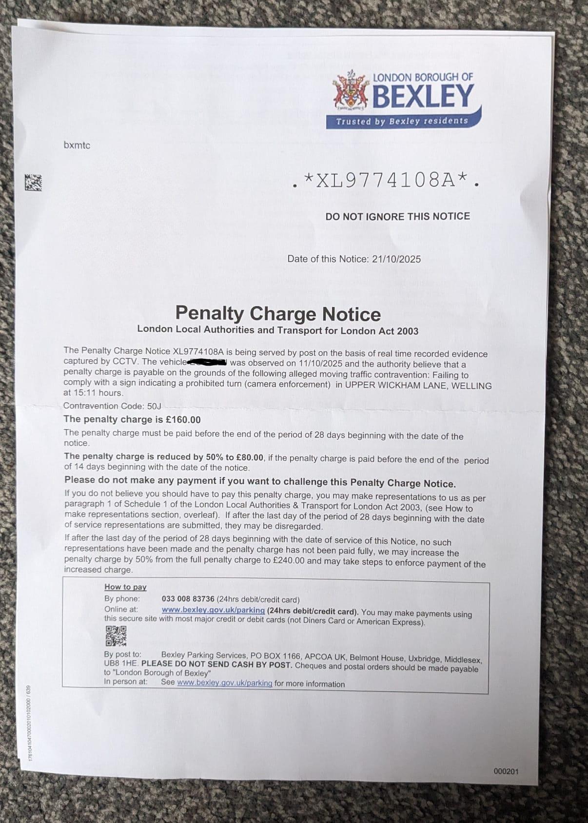 Author Topic: Penalty Charge Notice 50J - Prohibited Turn (Bexley Council/TFL) Upper Wickham Lane, Welling  (Read 679 times)