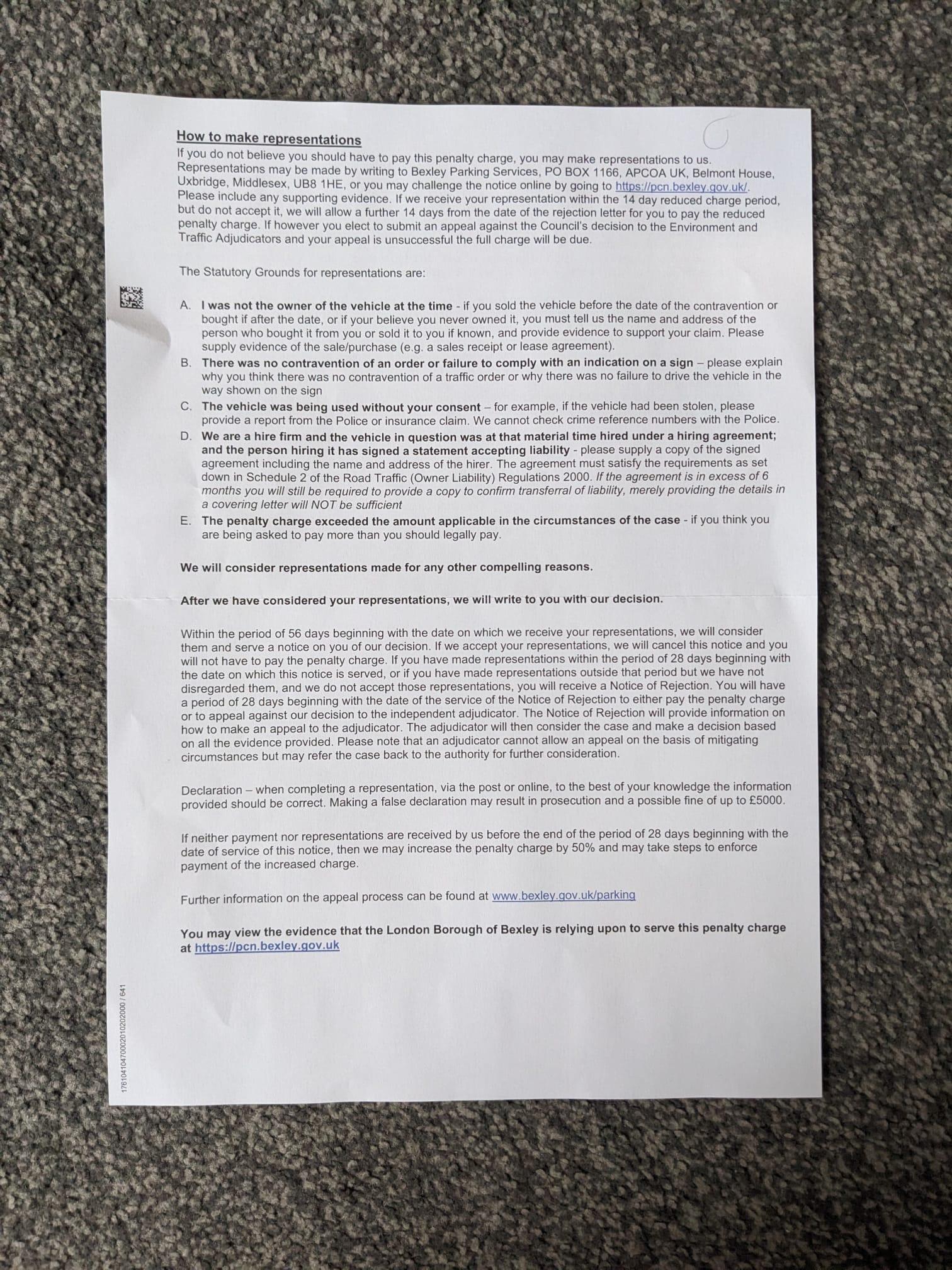 Hi, as the registered keeper, I received a Penalty Charge Notice from Bexley Council (TFL) through the post today 24/10/2025. PCN XL9774108A. Notice attached.