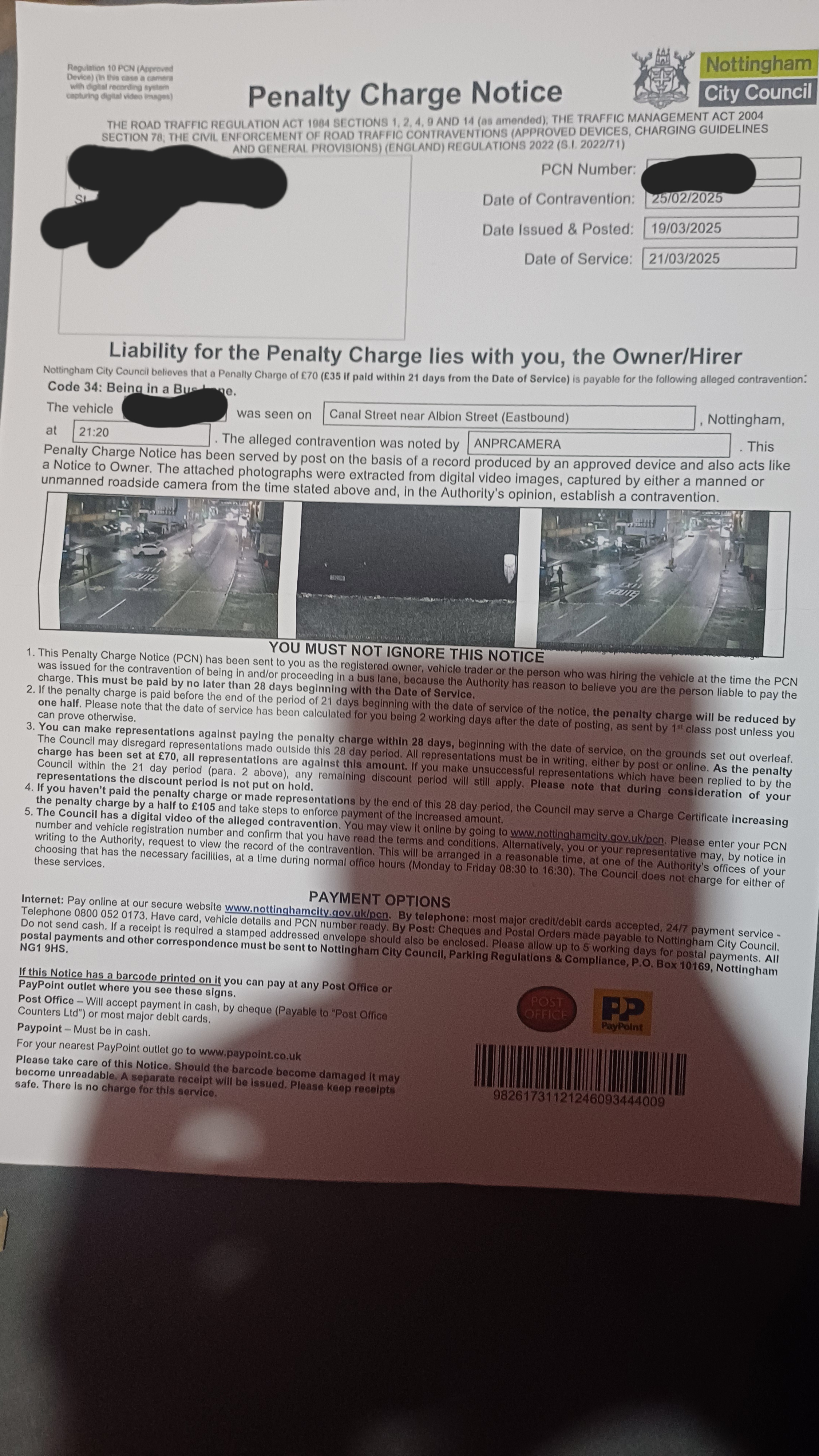 I have attached the notice received from Nottingham City Council.