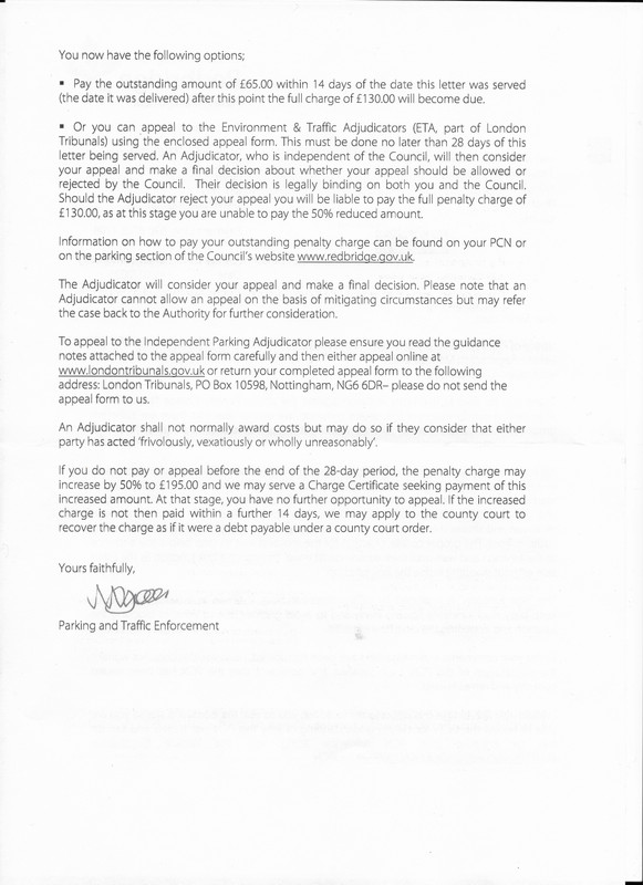 I submitted an appeal - please see text below but Redbridge have rejected it already and sent the following letter - please advise.  Thanks