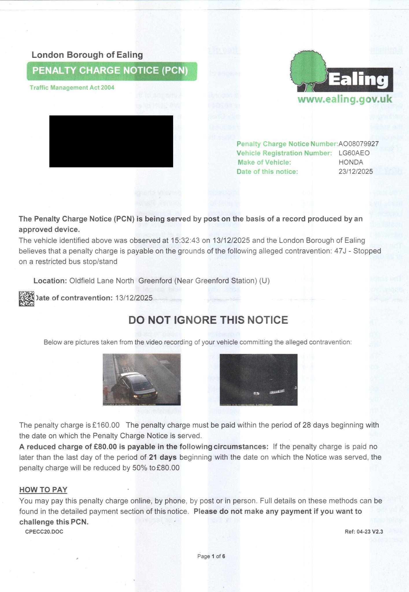 Re: Stopping on restricted bus stop - Ealing - Greenford Station