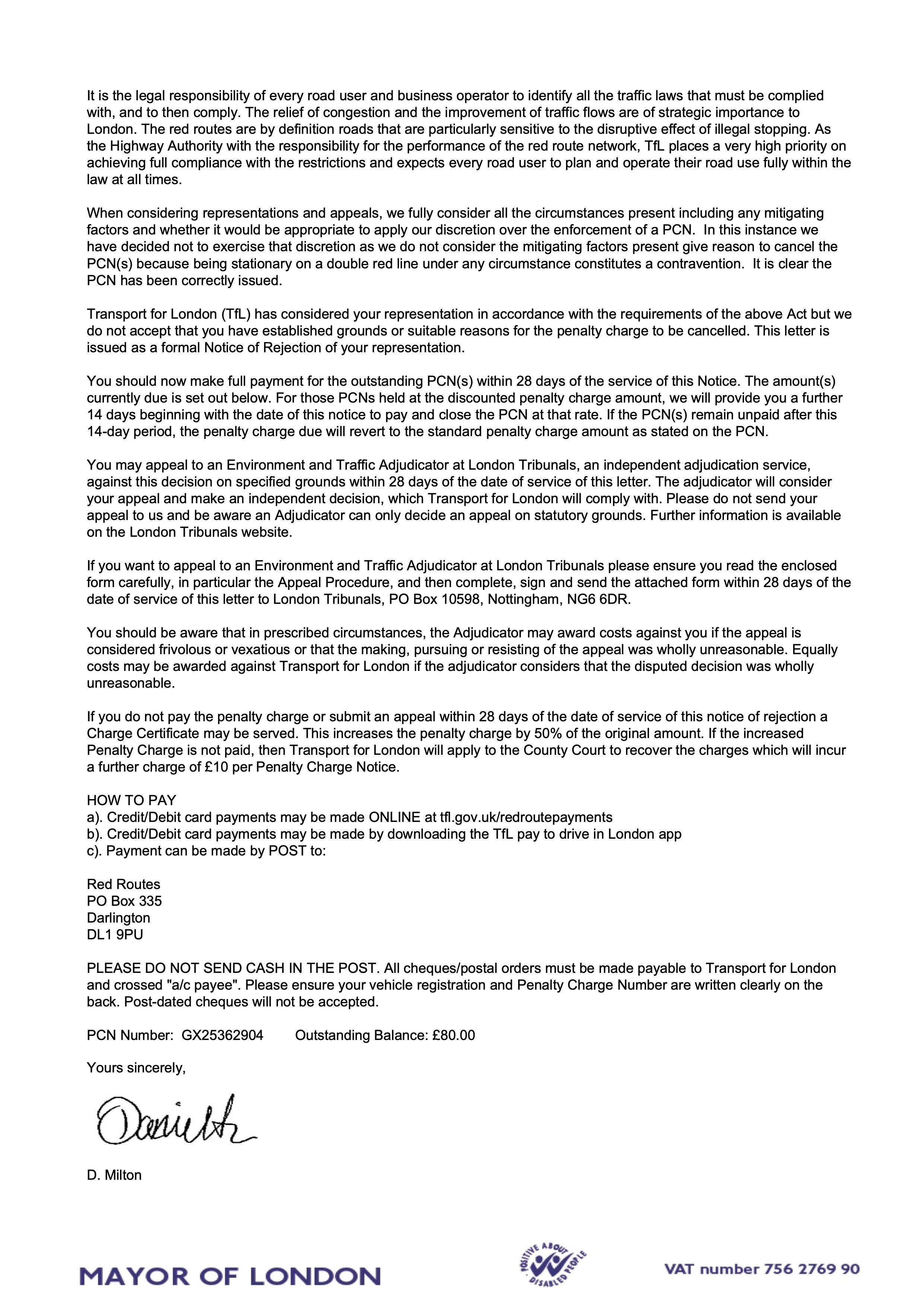 Looks OK, but don't be surprised if they reject it, as they are in thrall to the cash these PCNs generate.
