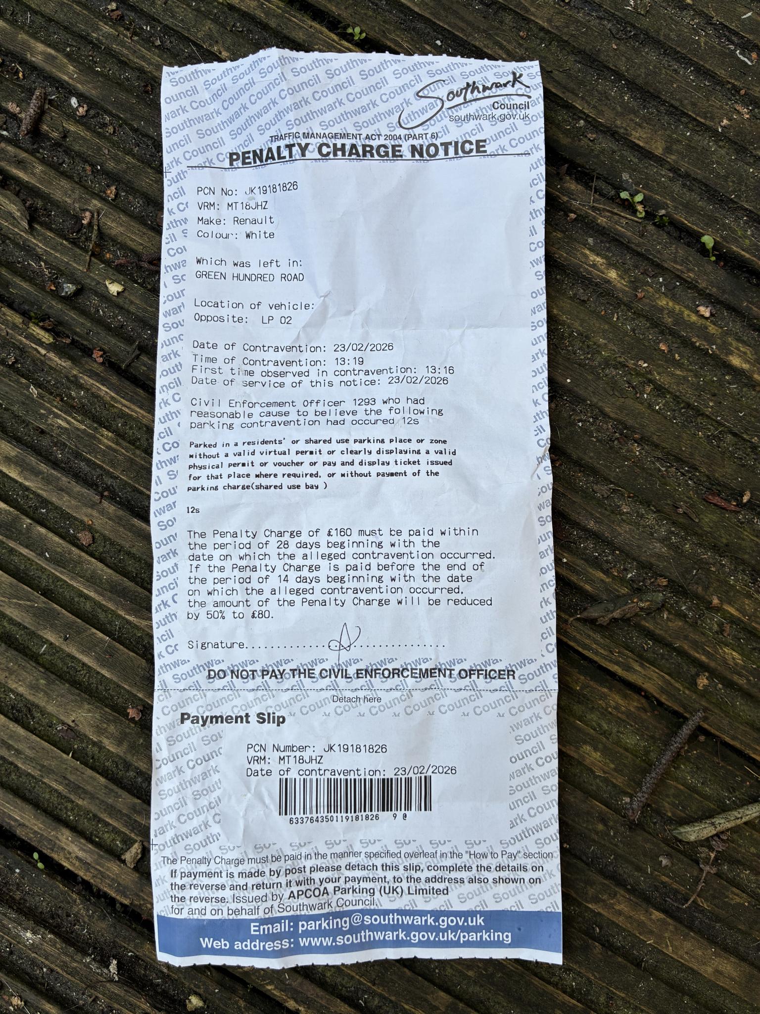 Author Topic: Southwark PCN – Loading exemption? Code 12s (Residents’ bay – 5 minutes – Post Office drop-off)  (Read 327 times)