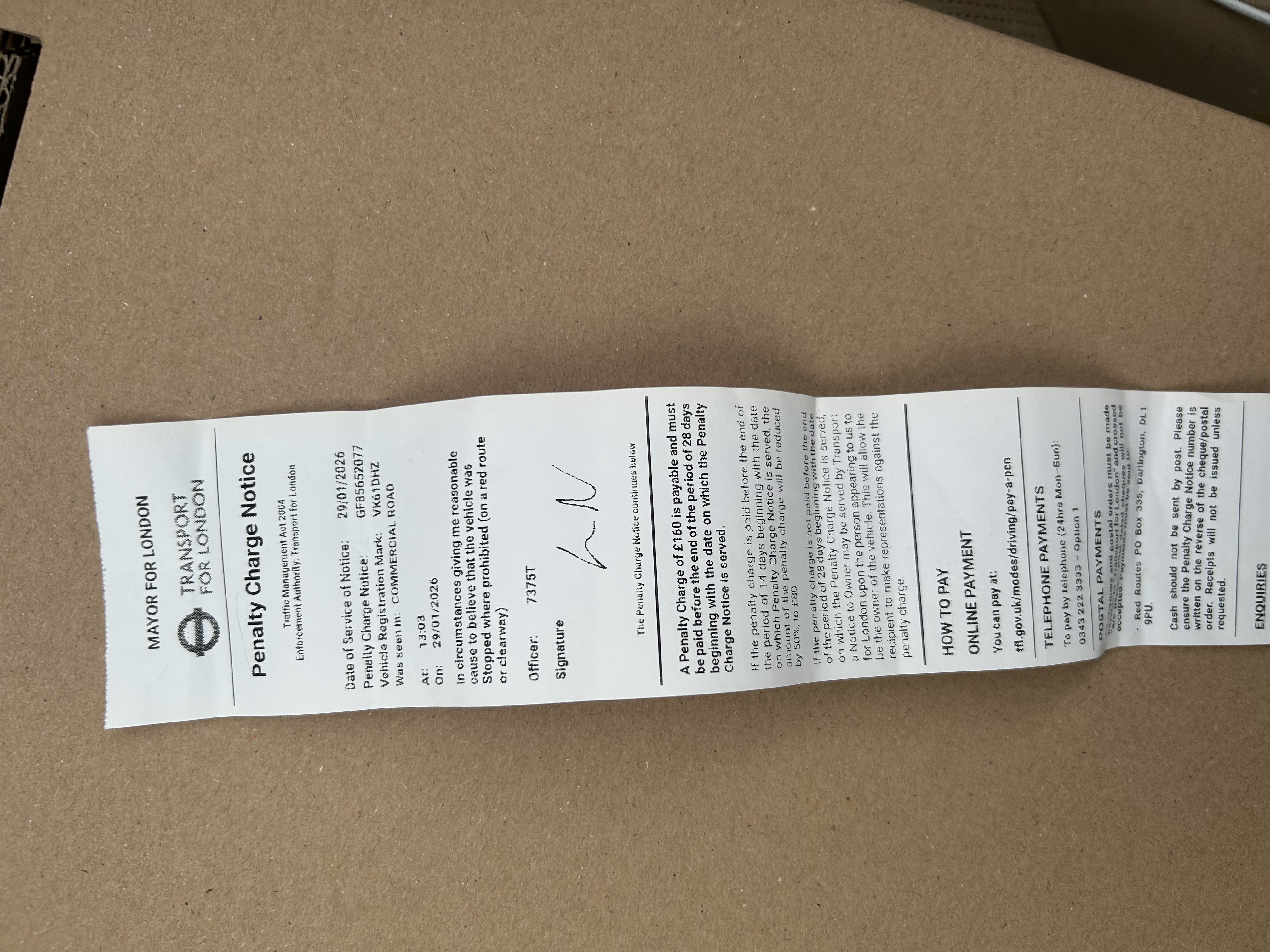 I had a loading and unloading sign on my dashboard. Also the warden/officer didn’t put the actual pcn on my dash as he had only just taken a photo of my car but not placed pcn on car and taken photo as I literally saw him so quickly ran out to the car. He said different rules apply for red route. I was always told to drive away when given a pcn before they place it on dash. I’m guessing different rules apply for tfl issued tickets? The officer did say though you can appeal and send them evidence of your courier app and that you were loading.