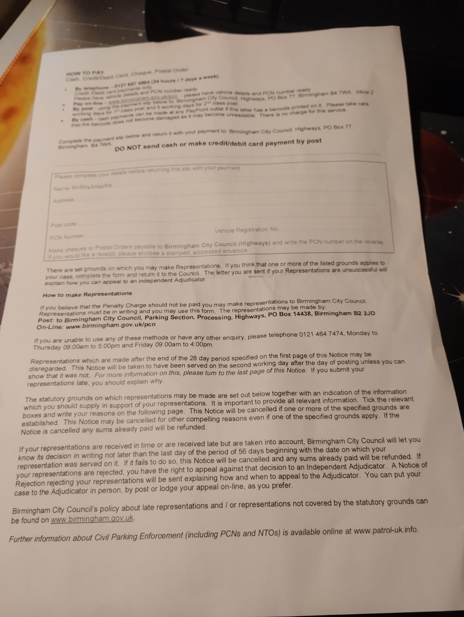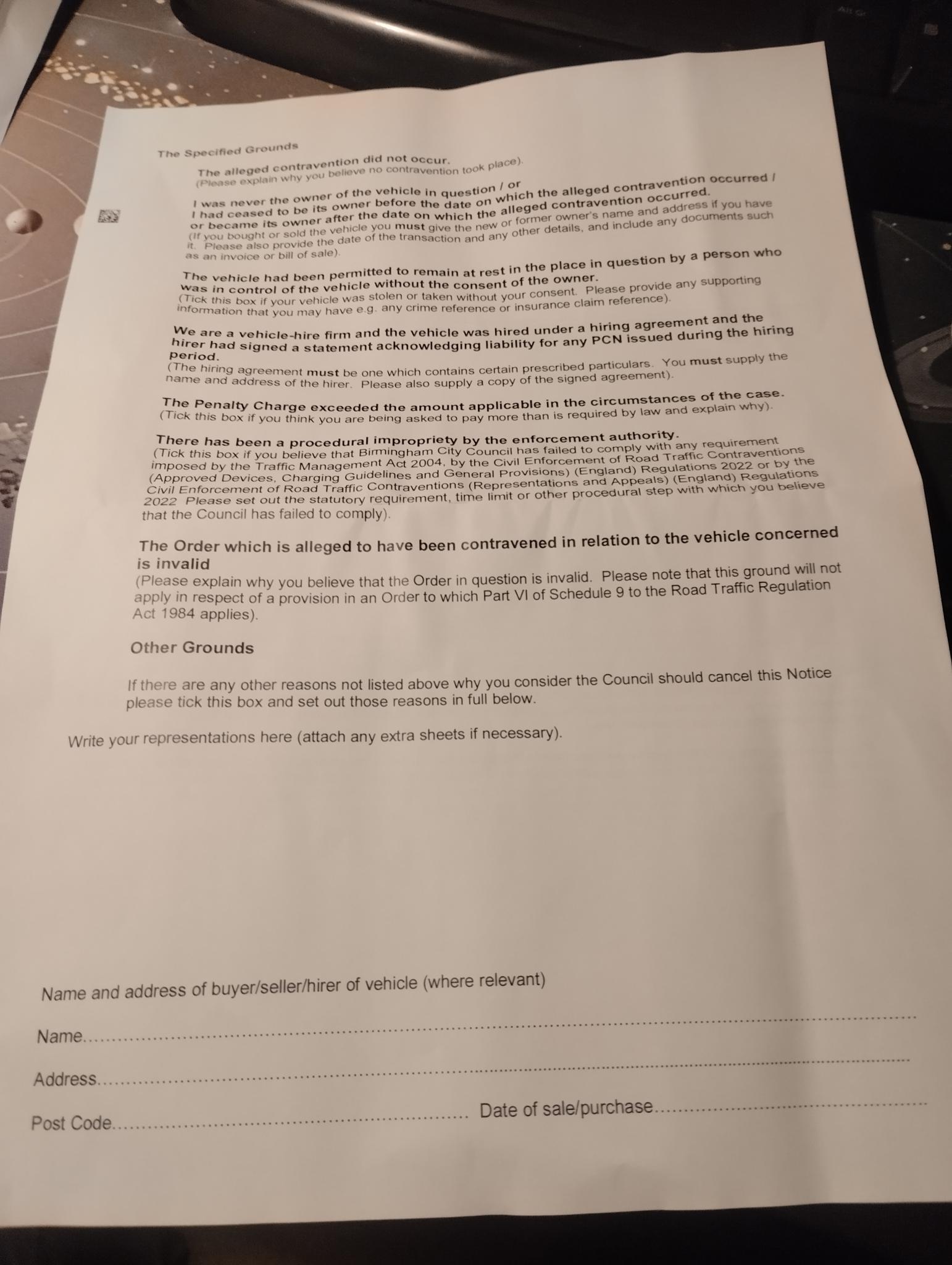 Frankly, I think this latter is a doubtful approach. However, it's the only approach that will get you to the Traffic Penalty Tribunal, because Option (1) is based on mitigation, which adjudicators cannot rule on.