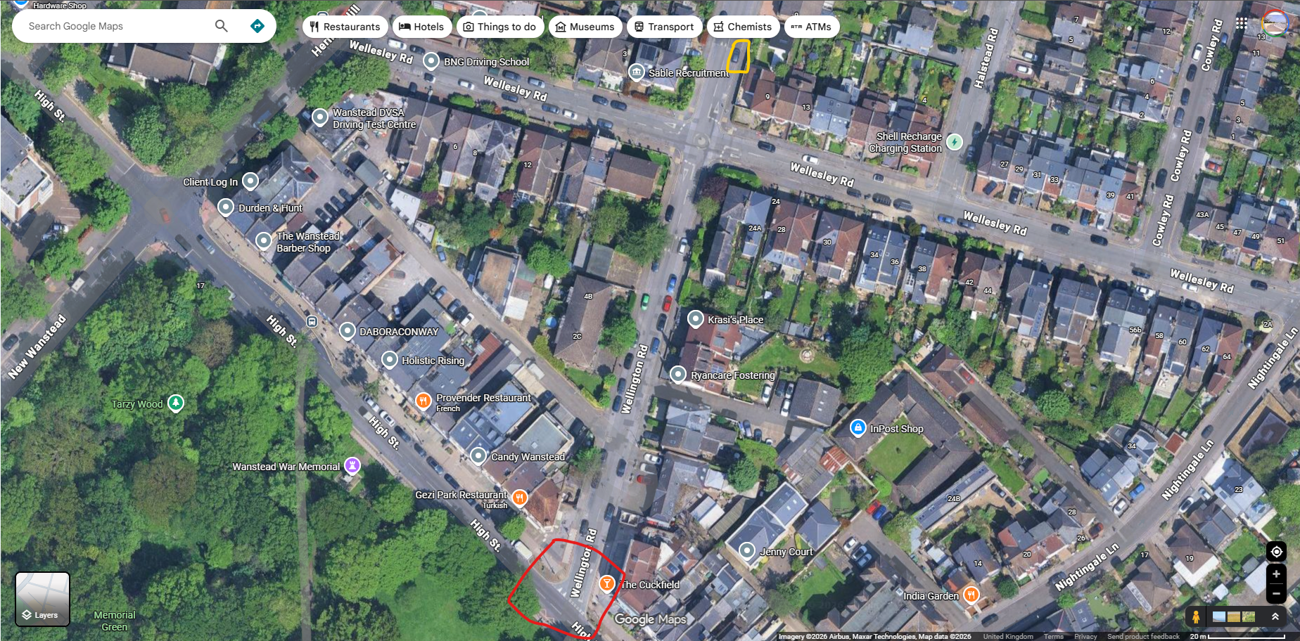I entered Wellington Road turning left from the High Street. A map of the location is provided in image 2.