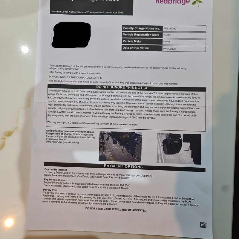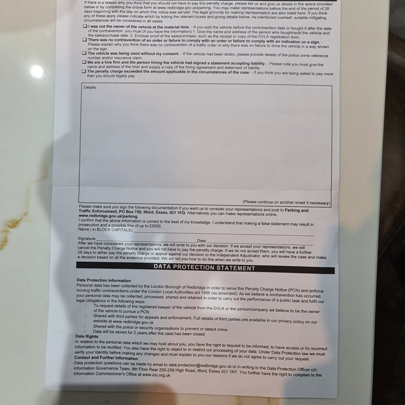 Please see the PCN below that my uncle received after briefly reversing down a one-way street in order to park and unload some items at his flat.