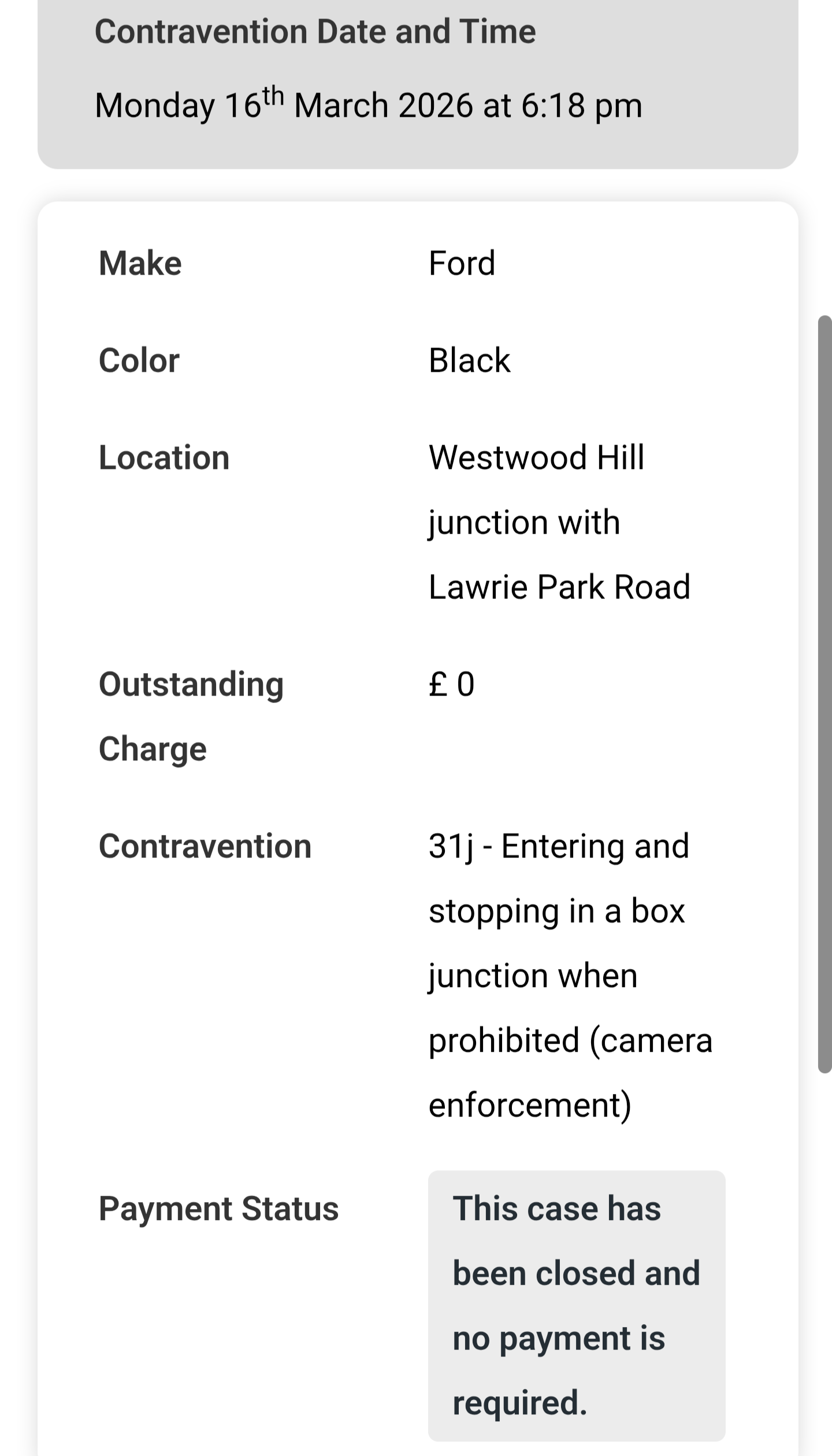 However, when accessing the council’s online payment system, I was informed that the penalty charge would increase to £160 on Sunday, 3 May 2026.