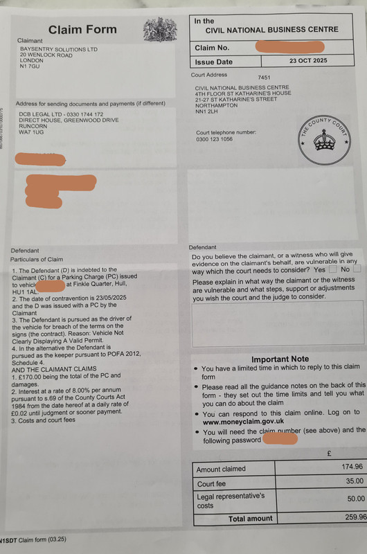 - The defendant has now received an N1SDT from BaySentry/DCB Legal dated 23rd October (attached here)
