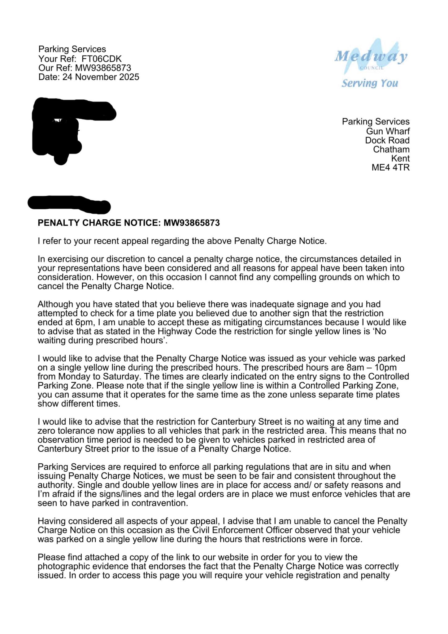 Civil penalty charge notices (Councils, TFL and so on) / Re: Medway Code 01 restricted street, canterbury st. Gillingham cpz signage a shambles.
