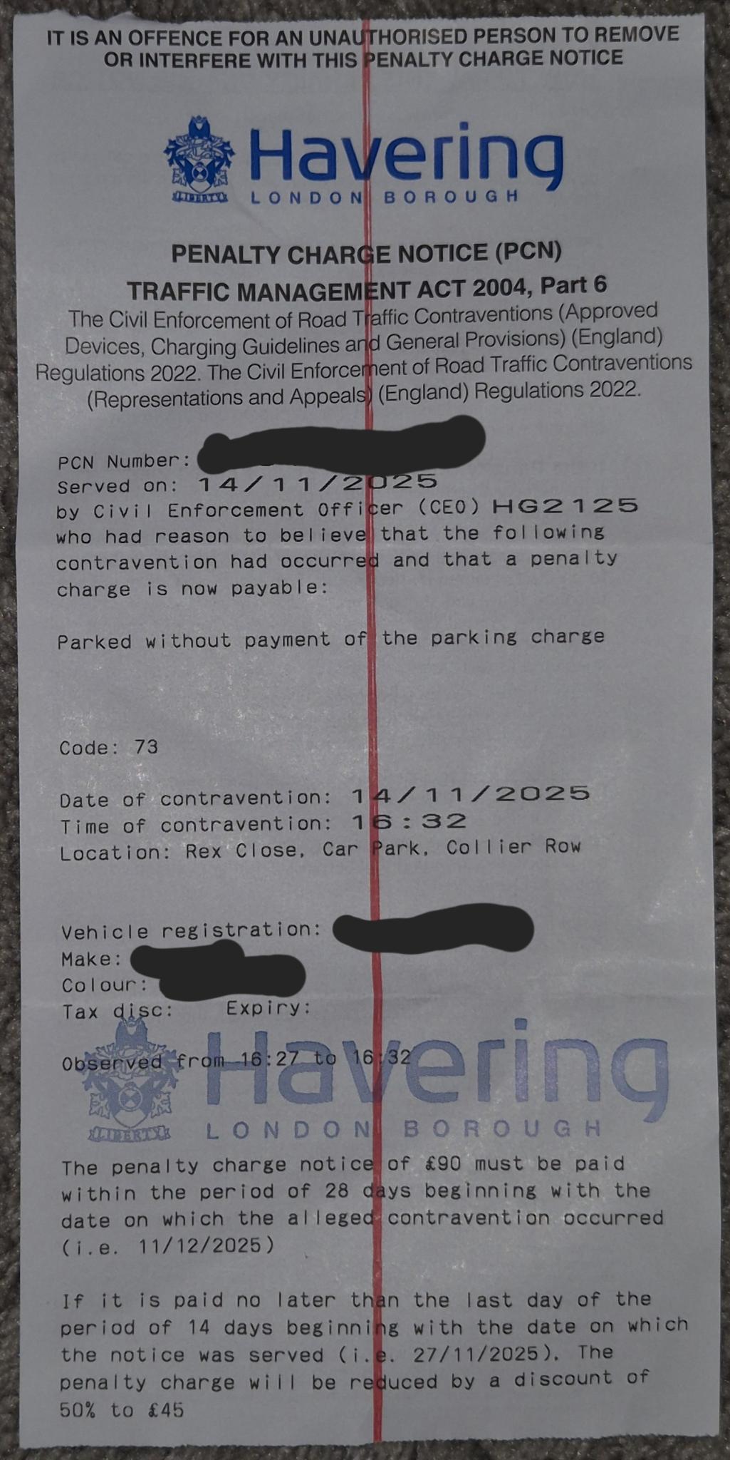 Civil penalty charge notices (Councils, TFL and so on) / Re: 30 minute FREE parking PCN
