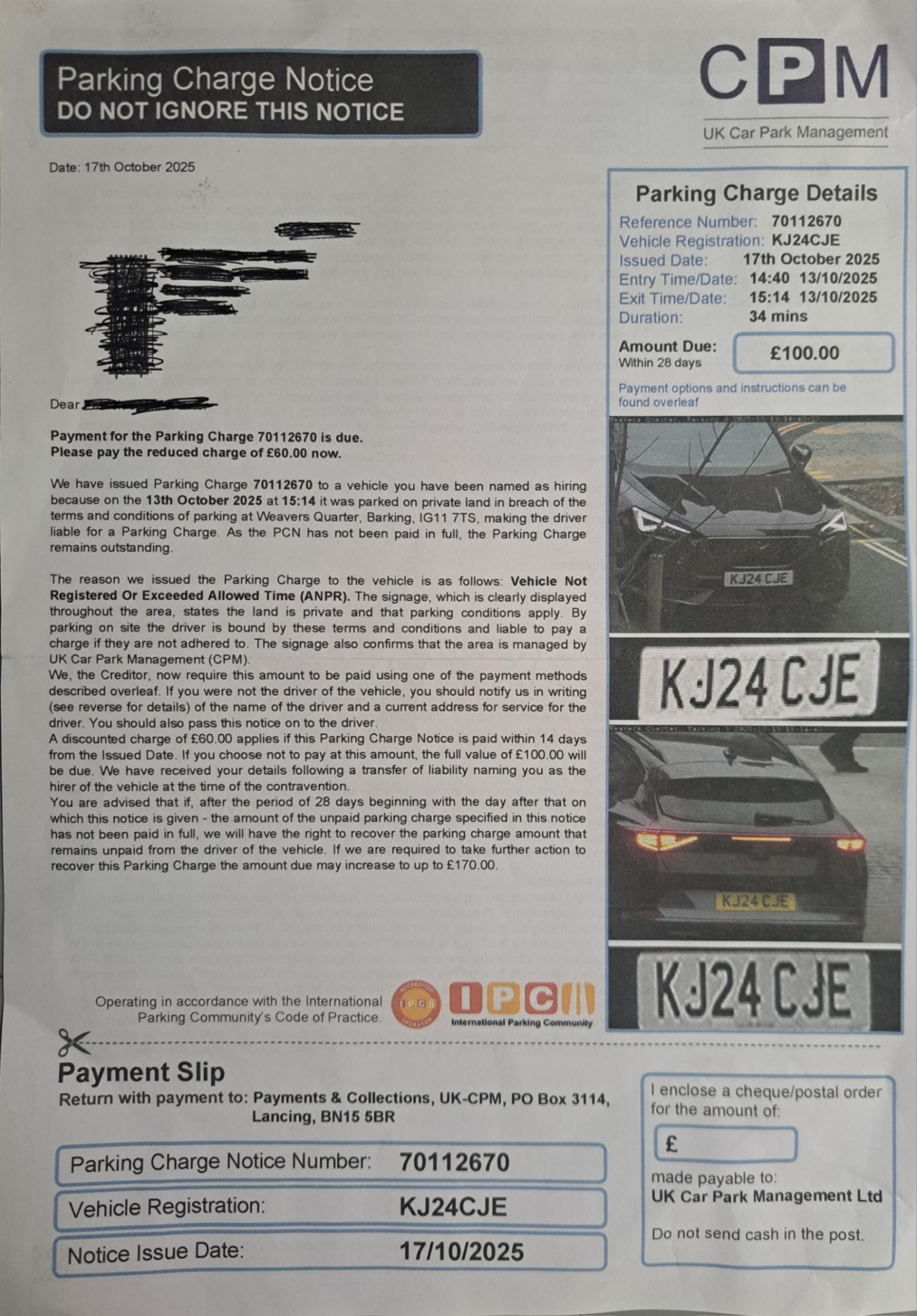 on 17 Nov, 2025 14:58 in Private parking tickets