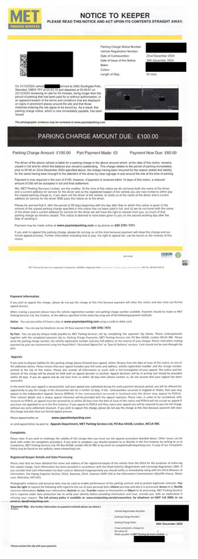 I would appreciate some advice on this case. I've had a look through the internet and on this forum and appreciate this appears to be a particularly prominent car park where MET Parking Services are issuing people with tickets for basically nothing and then attempting to intimidate them into paying through veiled threats of legal action and debt recovery via different letterhead letters. I note that numerous of these incidents have been highlighted in the mainstream media including newspaper and online articles as well as TV shows, (Jo Lucett), unfortunately discovered all these post PCN.