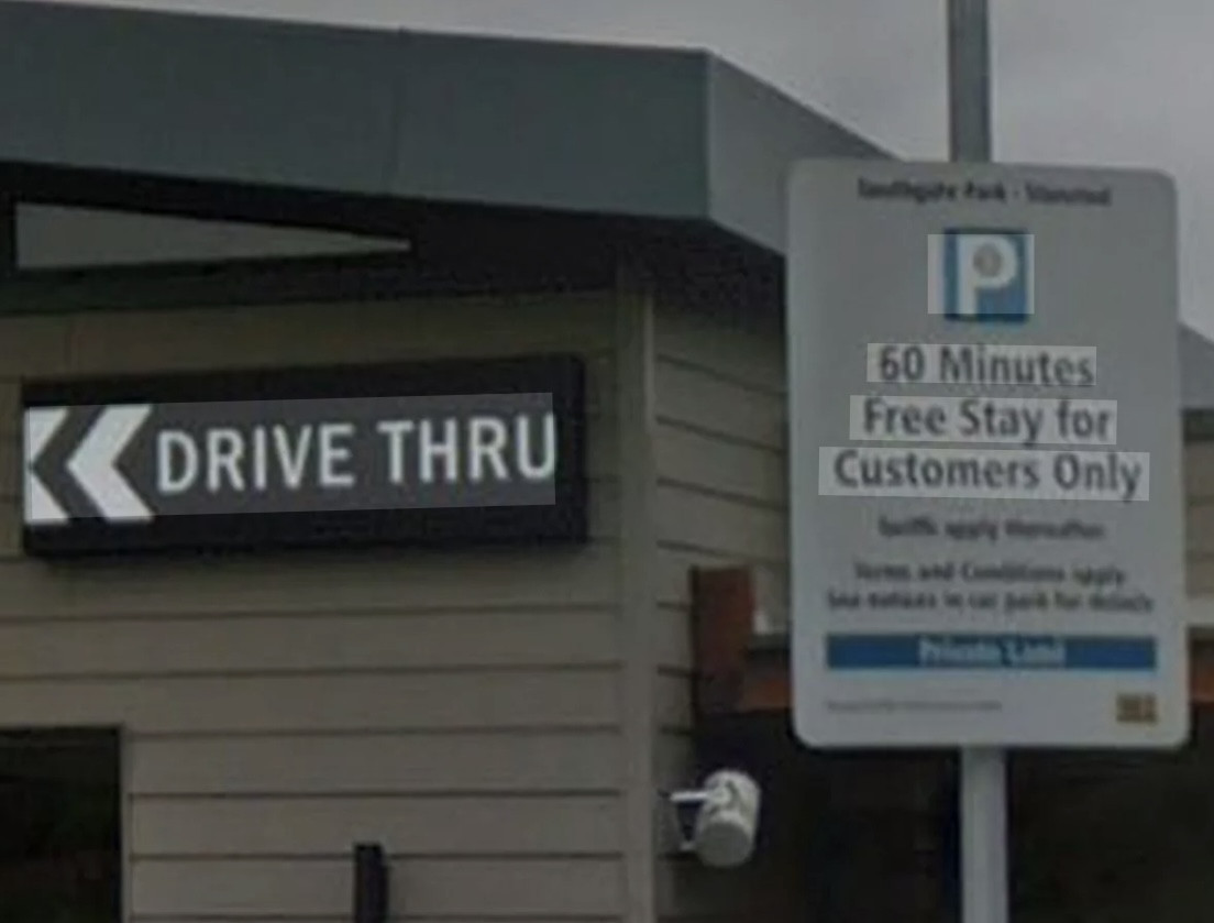 I have also seen other articles suggesting when the store is open there is a screen inside Starbucks to enter vehicle registration details when using the store, but even this isn't clear as a requirement and people have received tickets when parking in the car parkand using Starbucks. Obviously as it was closed there was no option to enter vehicle details or ask anyone permission to park there nor was there a facility to enter vehicle details in Mcdonalds. It certainly was not clear that in making a purchase in McDonalds you would not be classed as customer and the suggestion would be you were in a separate car park, (especially when there is one shared entrance / exit).