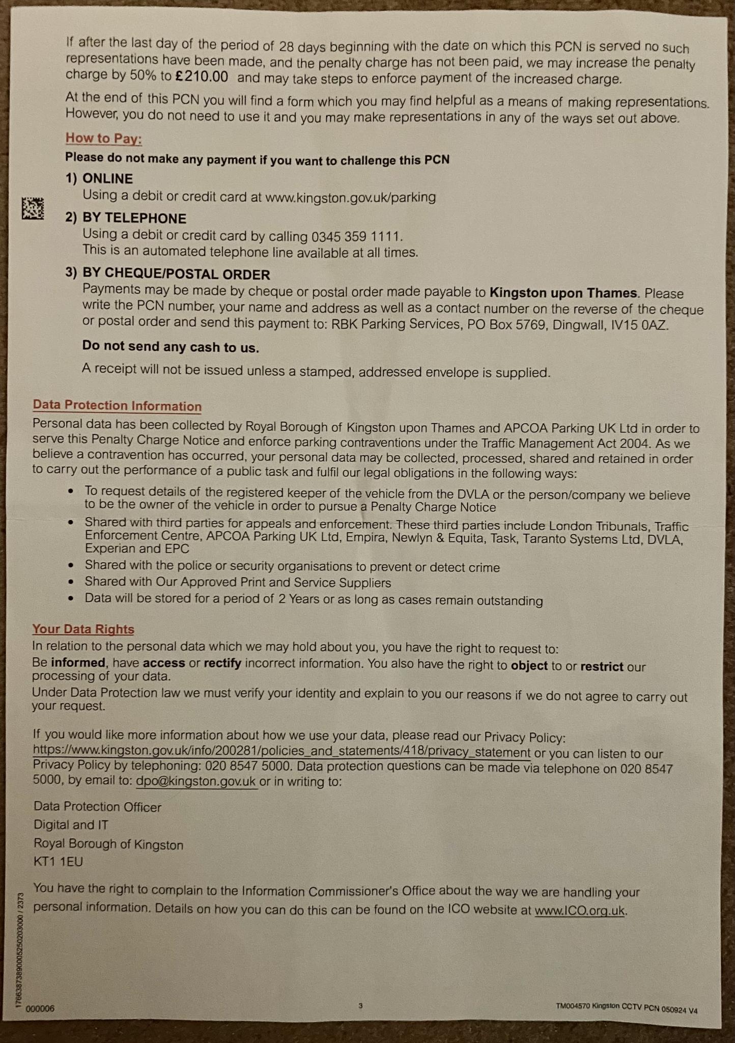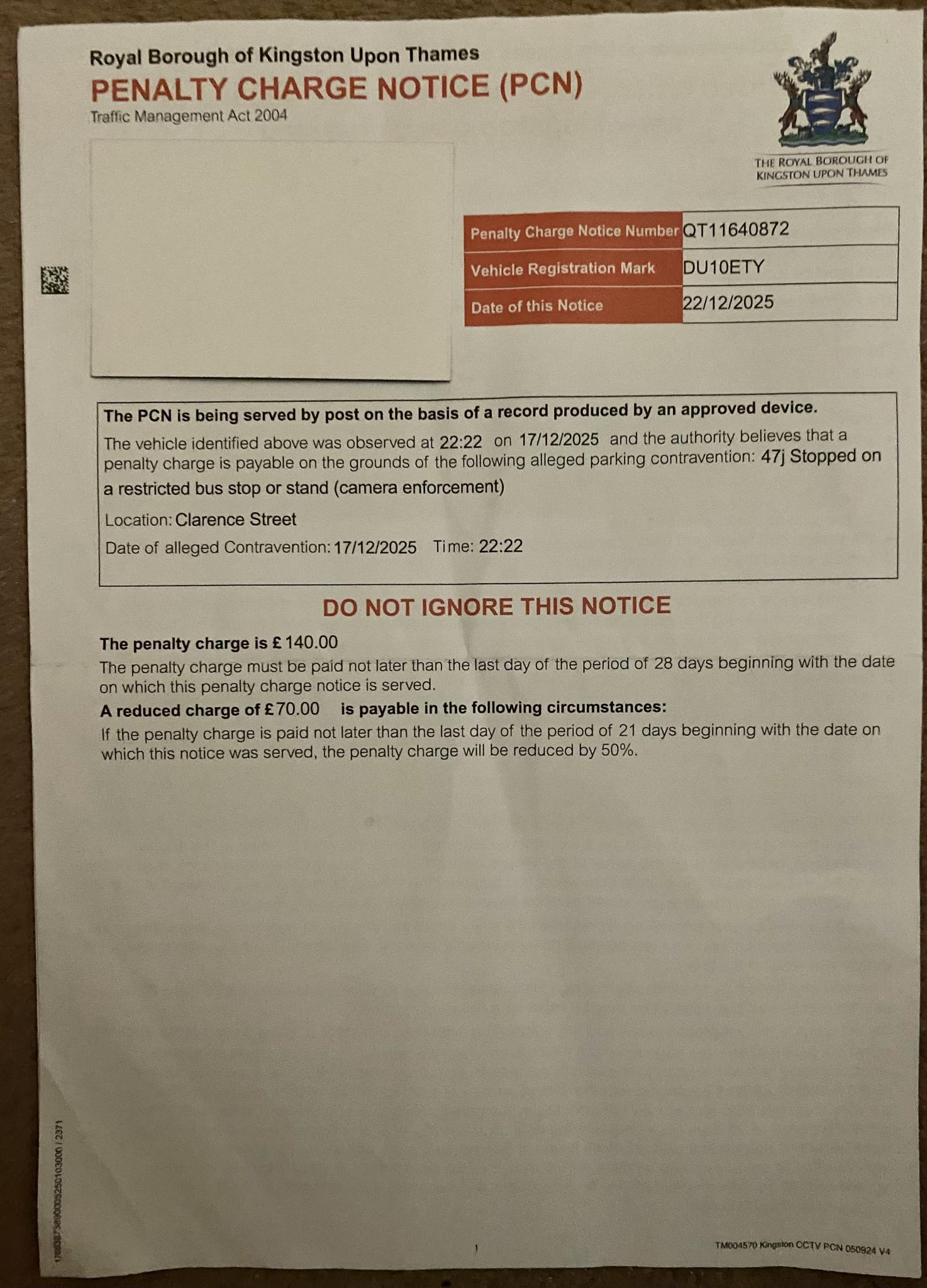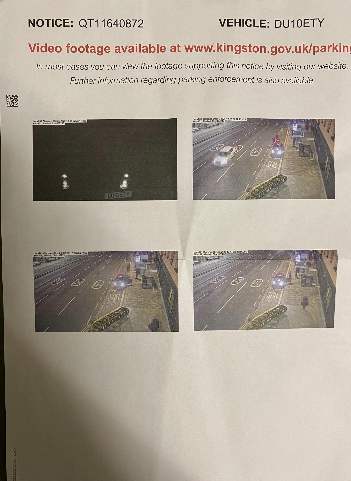 Civil penalty charge notices (Councils, TFL and so on) / Re: Kingston Upon Thames PCN 47j Stopped on a restricted bus stop Location – Clarence Street