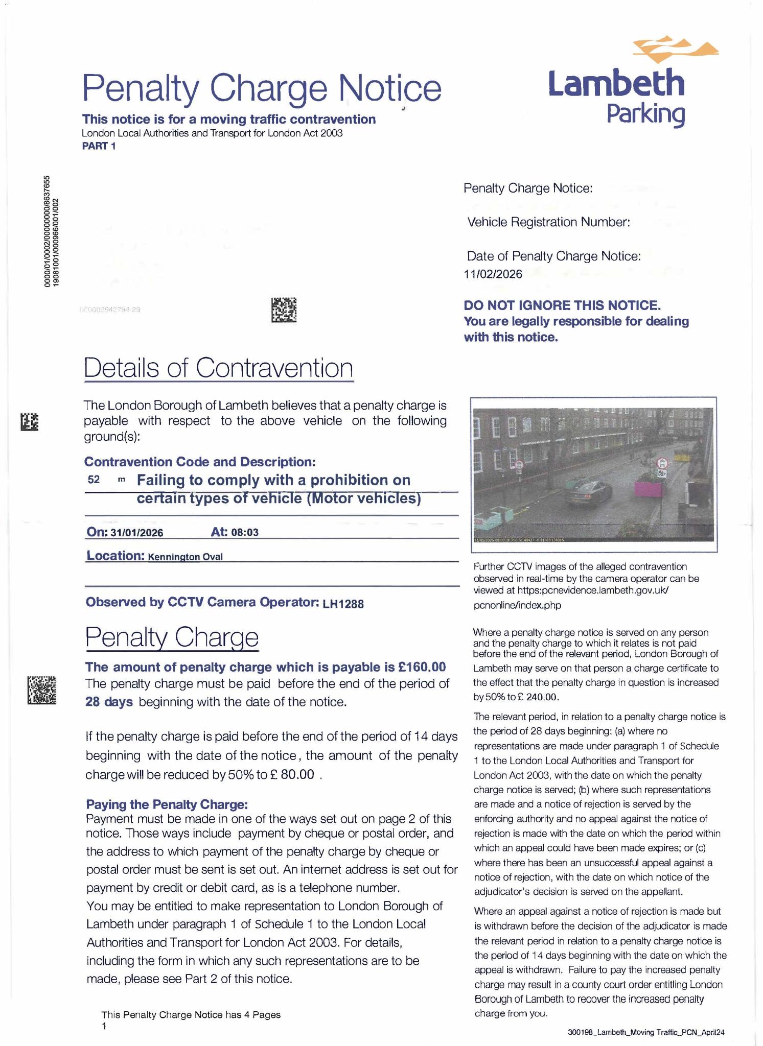 I got a PCN issued on 11/02/2026, date of contravention 31/01/2026 from Lambert Council.