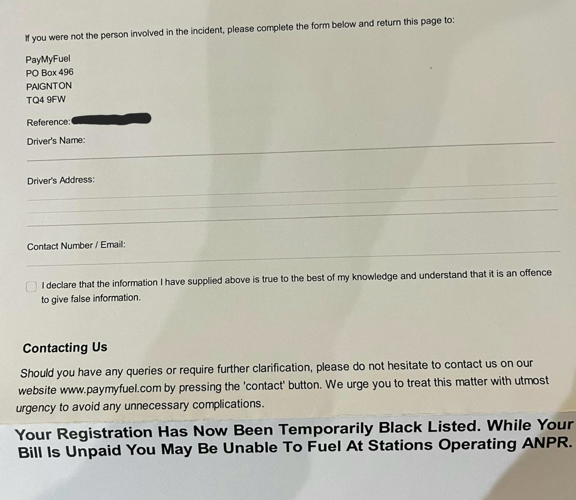 There were different opinions in responses to those threads. The principal issue that I could see was that QDR make their demand solely on the basis that the person they demand payment from is the Registered Keeper. It seems “Pay My Fuel” do the same. That’s not surprising as they have no idea who was actually responsible for the alleged debt.