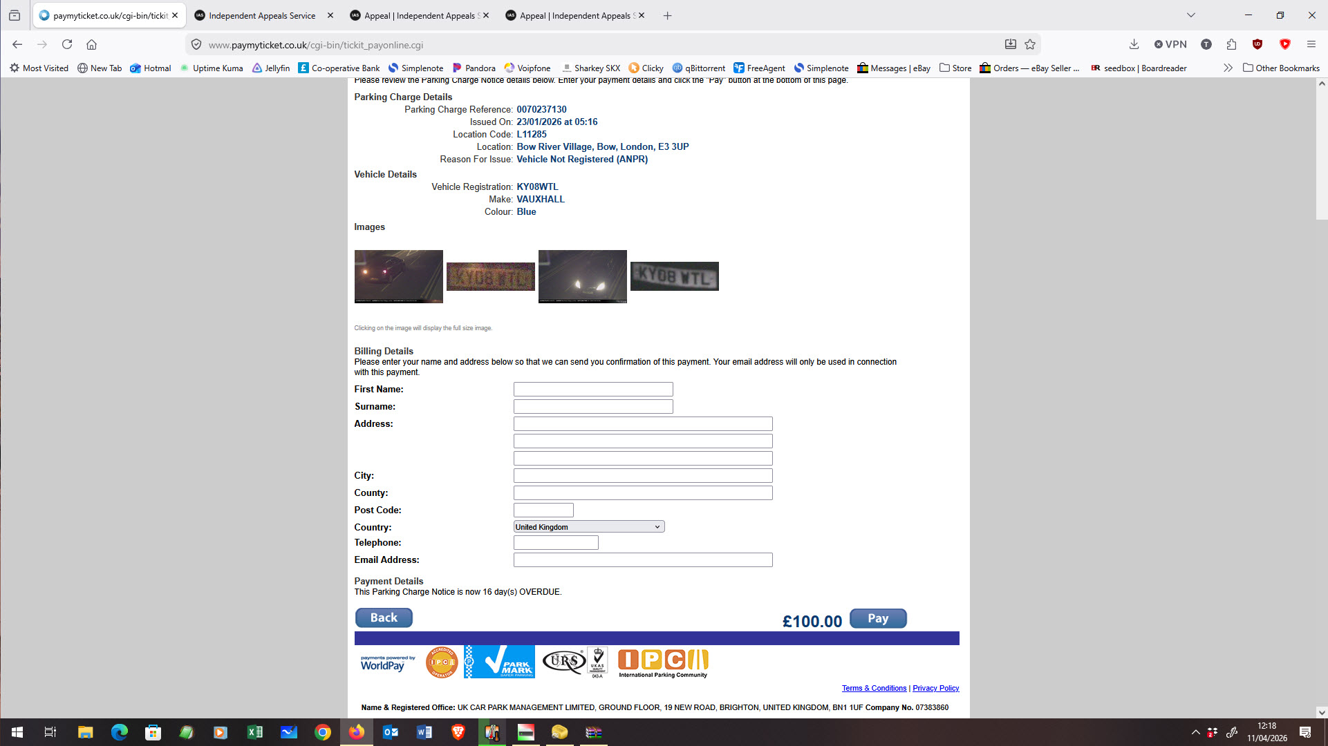Scans and screendumps of CCTV photos below. APlogies the parking charge number is obfuscated. Providing the parking charge number and reg seems unwise on a public forum, as someone could use it maliciously - file a BS invalid appeal and prevent me from doing so etc.