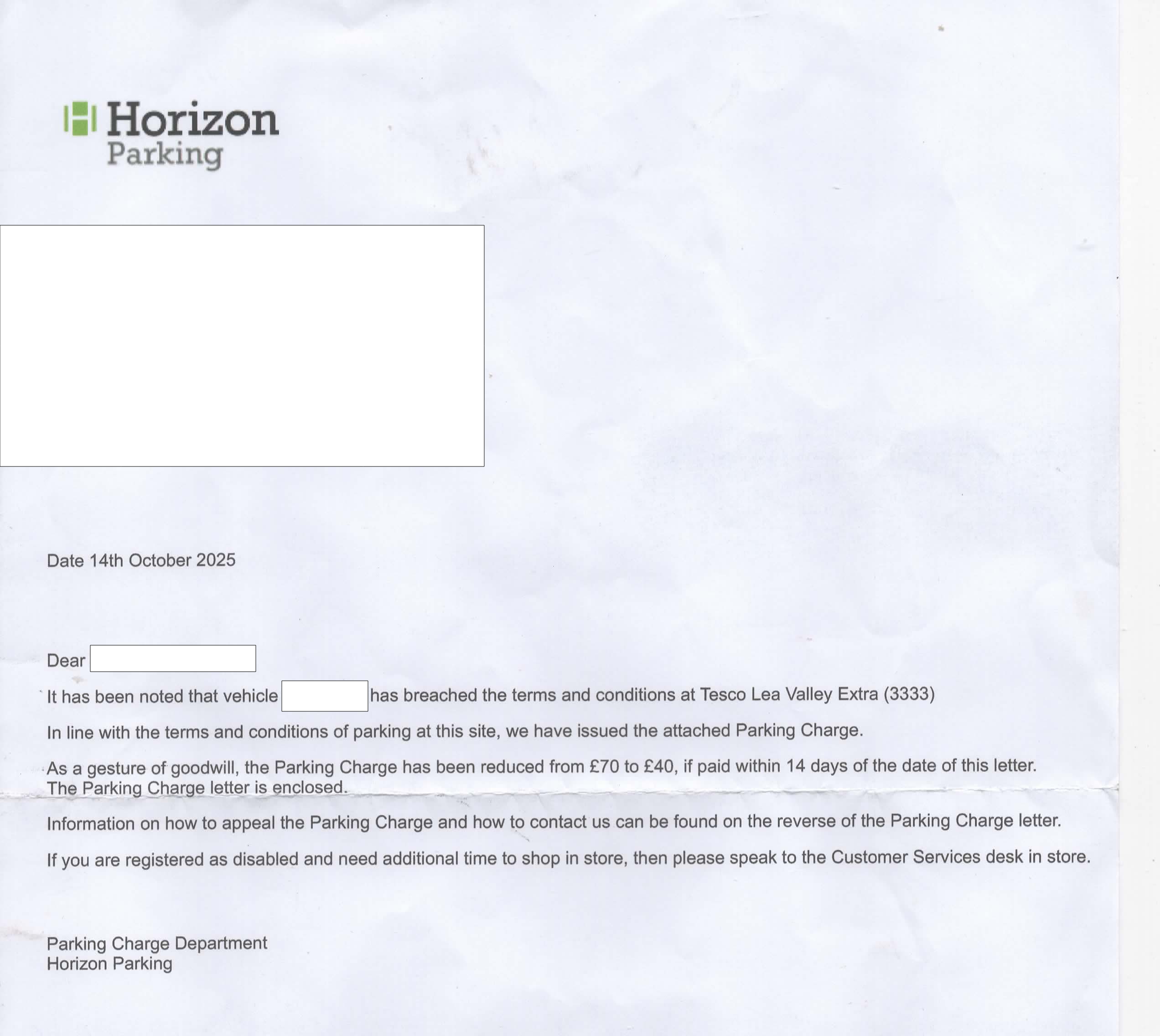 Author Topic: Horizon Parking - Tesco Lee Valley - overstaying  (Read 1235 times)