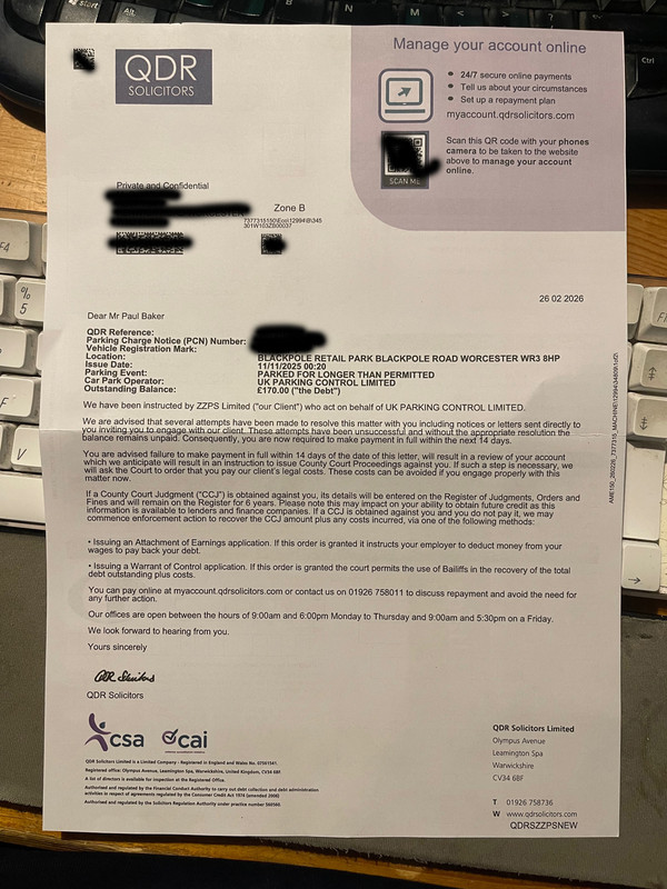 The parking charge was issued on 11/11/2025 as the vehicle was parked at Blackpole Retail Park - Overstaying Time . Your name and address was obtained from the DVLA, as you are the registered keeper of the vehicle. The parking charge notice was sent to you on 15/11/2025 and a final reminder was sent to you on 29/11/2025. Please see attached PDF copies of these notices. After no payment or correspondence from you, the parking charge was passed to our third-party debt recovery company for further action.