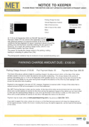 Consequently, MET has forfeited its right to recover any unpaid parking charges from the keeper of the vehicle.