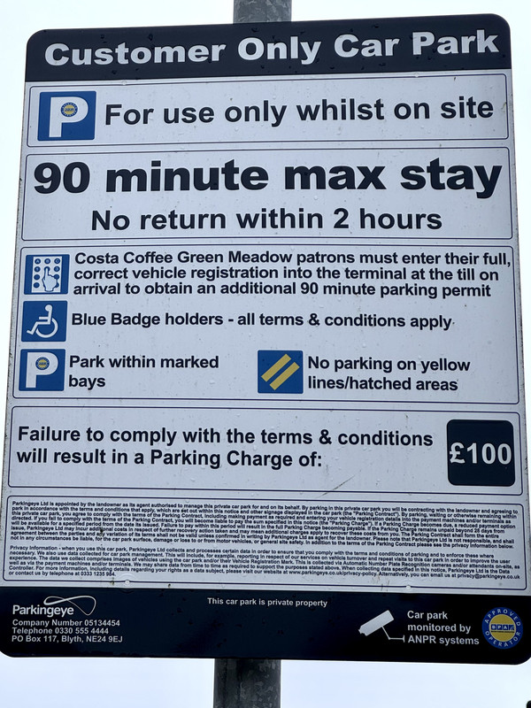 On 14 March The driver drove the 50 mile round trip to Costa Coffee and spoke with the manager who kindly offered to cancel the PCN via the parking company though warned there might be a £20 “admin charge”.